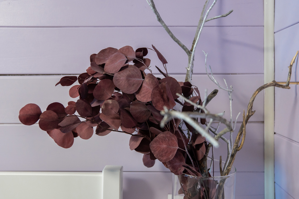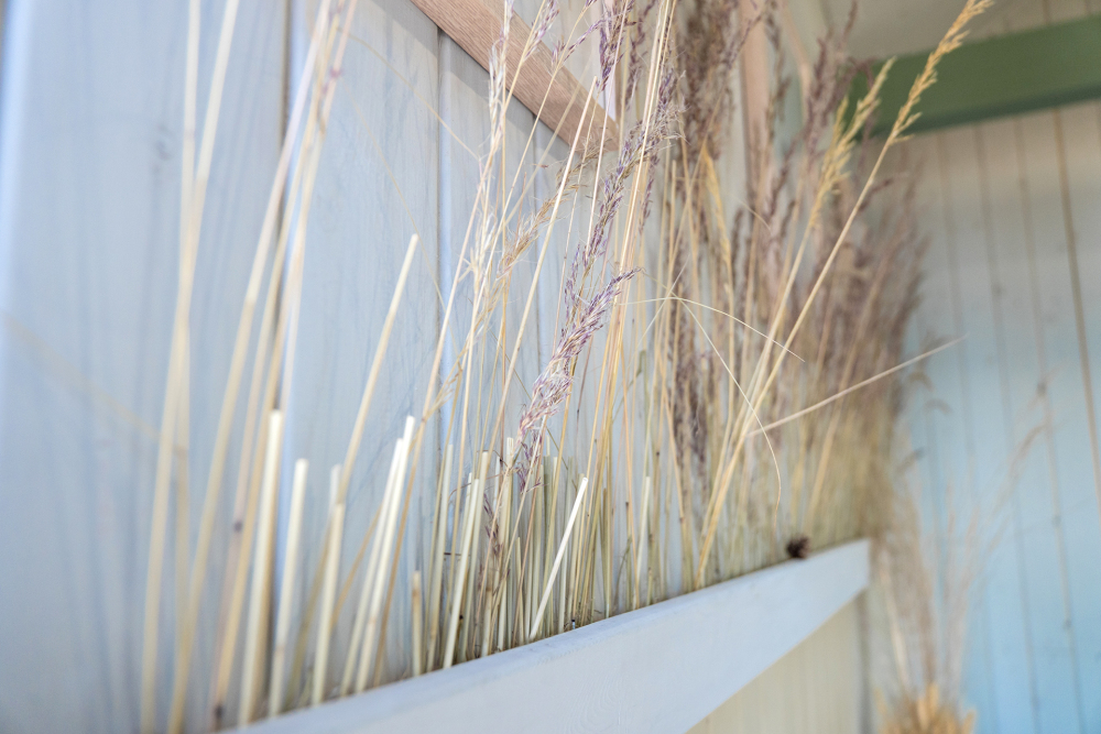 В интерьера тематического дома используются натуральные ткани и сухоцветы, характерные для байкальской местности.