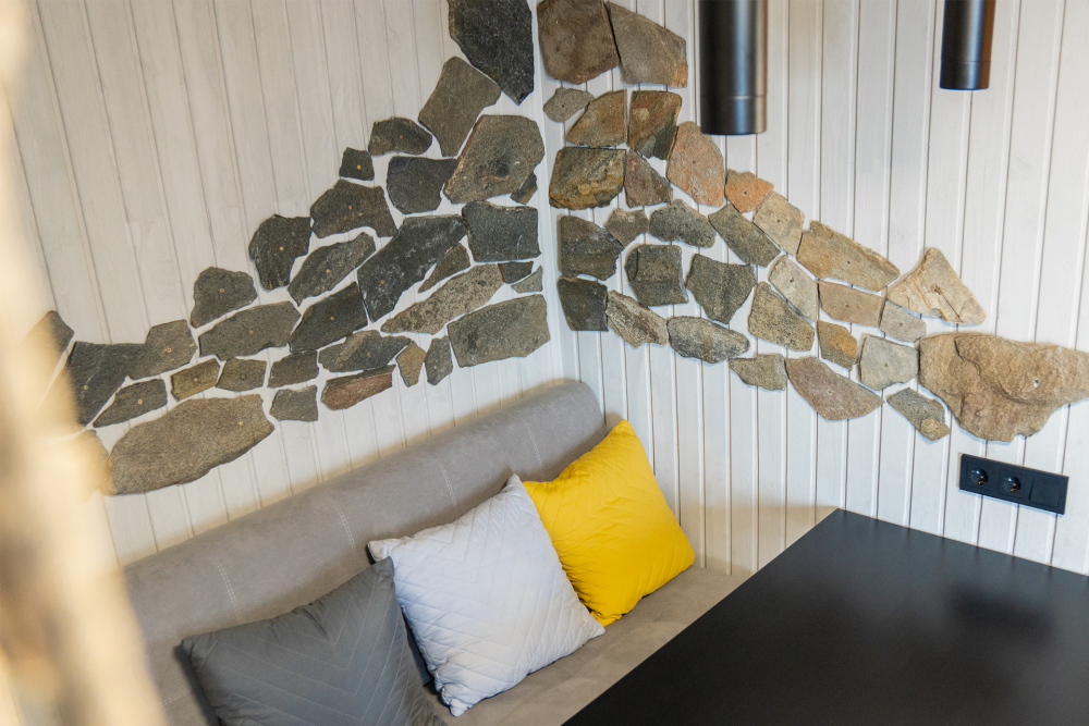 Тематический дом, дизайн которого вдохновлен скалистой местностью Малого Моря. В интерьере используются природные камни и цвета.