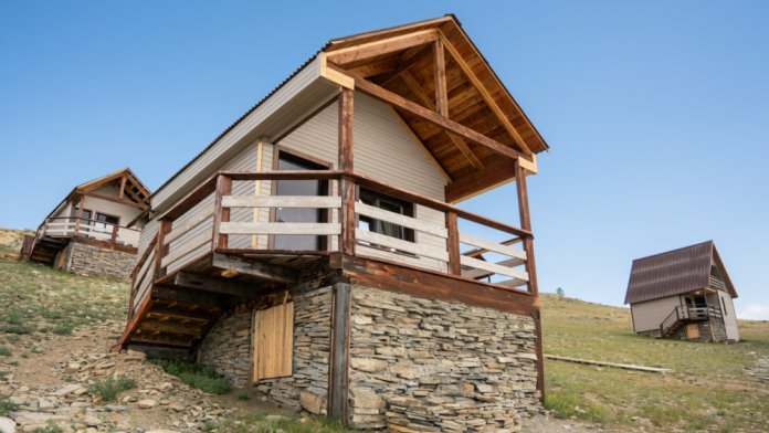 Отличный вариант для большой компании. У каждого дома своя небольшая терраса с видом на Байкал.