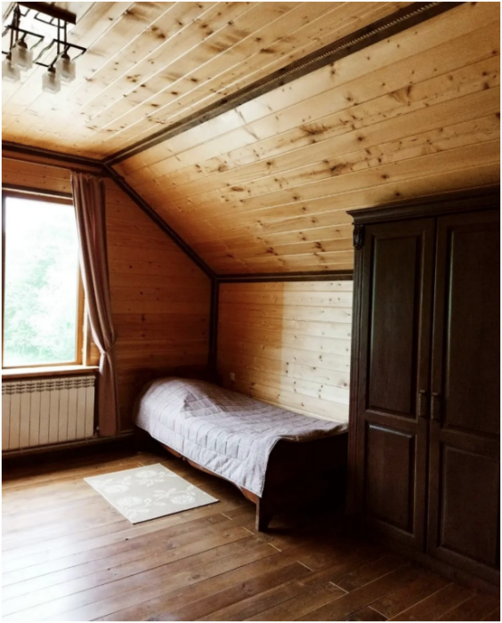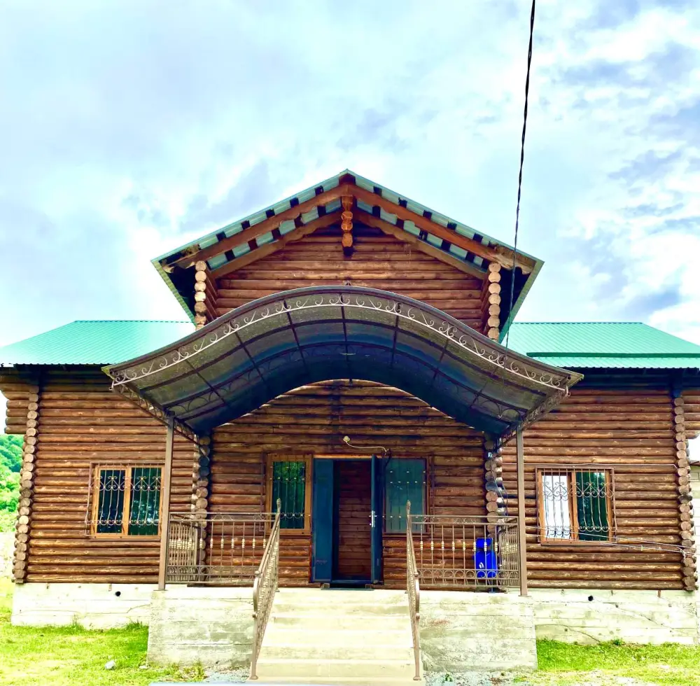 Дома из соснового сруба расположены в лесу, на берегу горной реки, есть озеро с рыбами, из окон открывается потрясающий вид на горы.