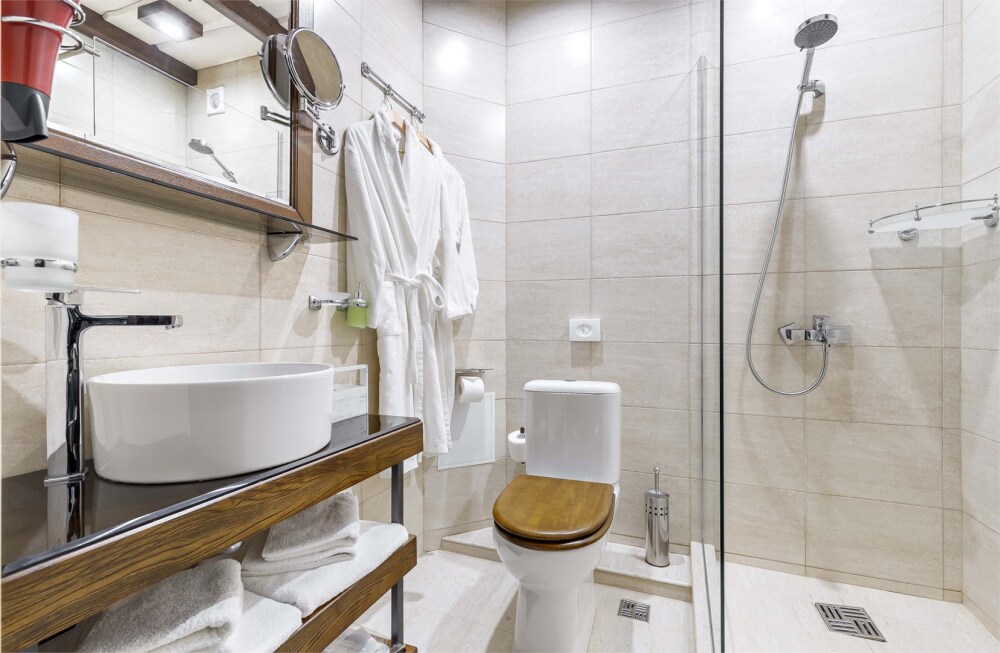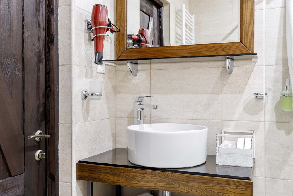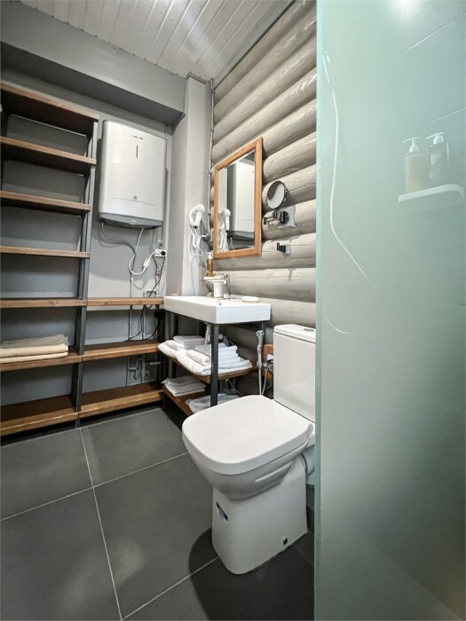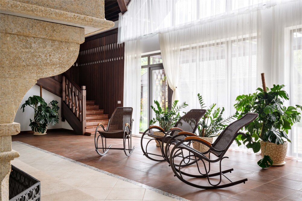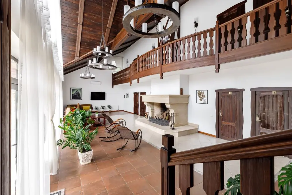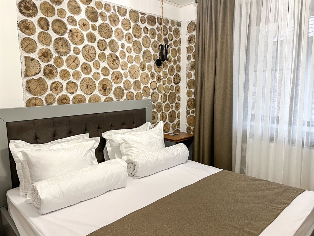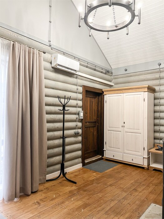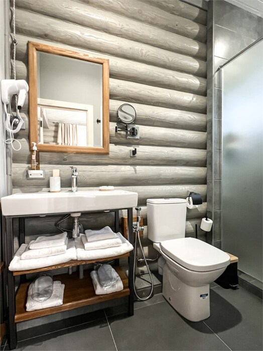 В элегантном однокомнатном номере мебель и предметы интерьера выполнены из эко-материалов, а все ткани натуральные и приятные на ощупь. В каждом номере балкон с видом на великолепный лес.