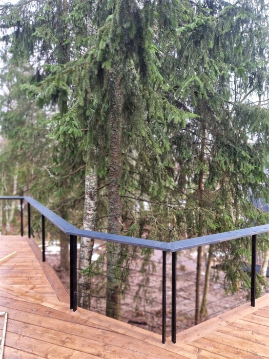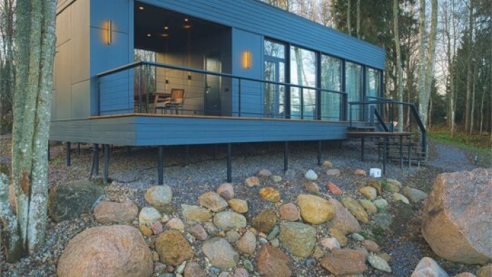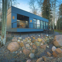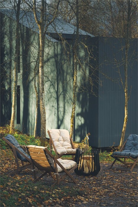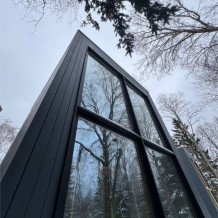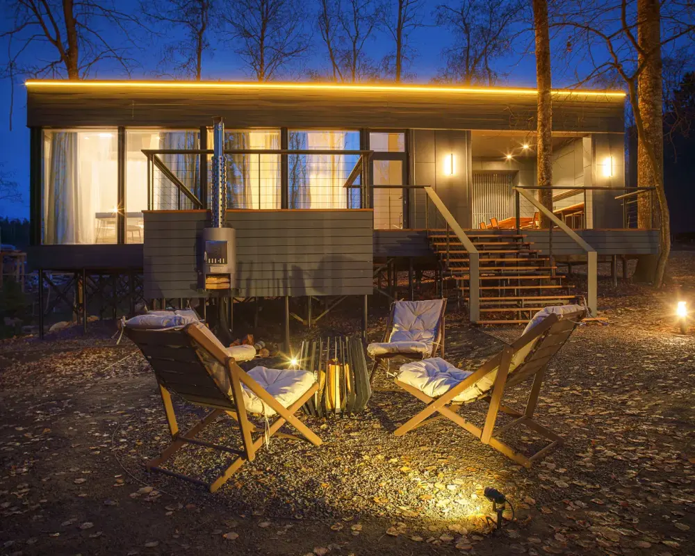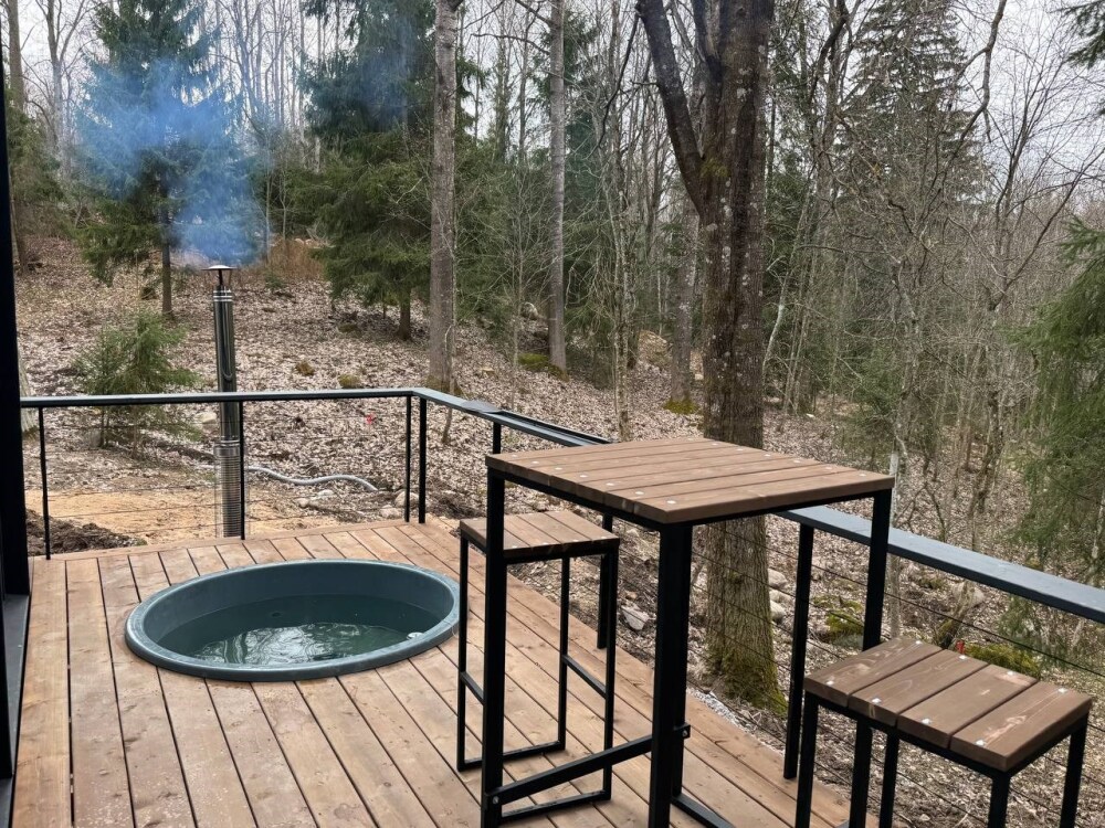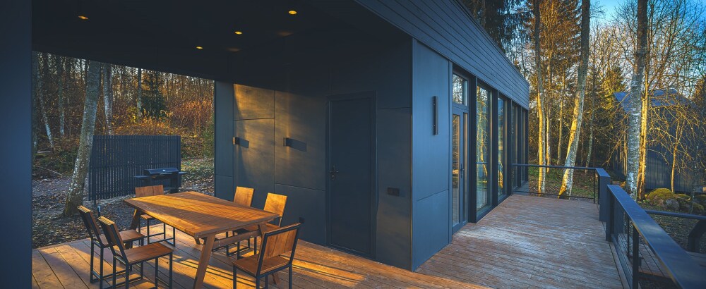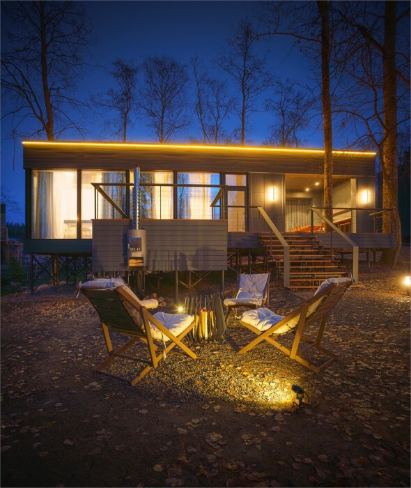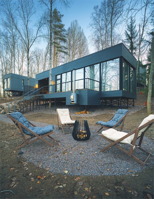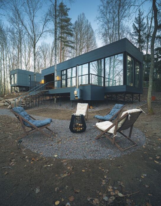 Вилла с панорамными окнами, террасой, собственной всепогодной купелью, мангалом и собственной костровой зоной.