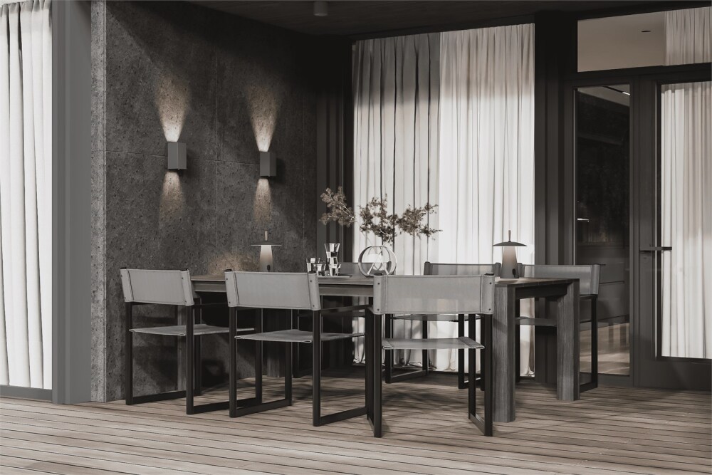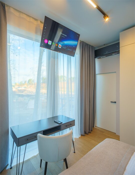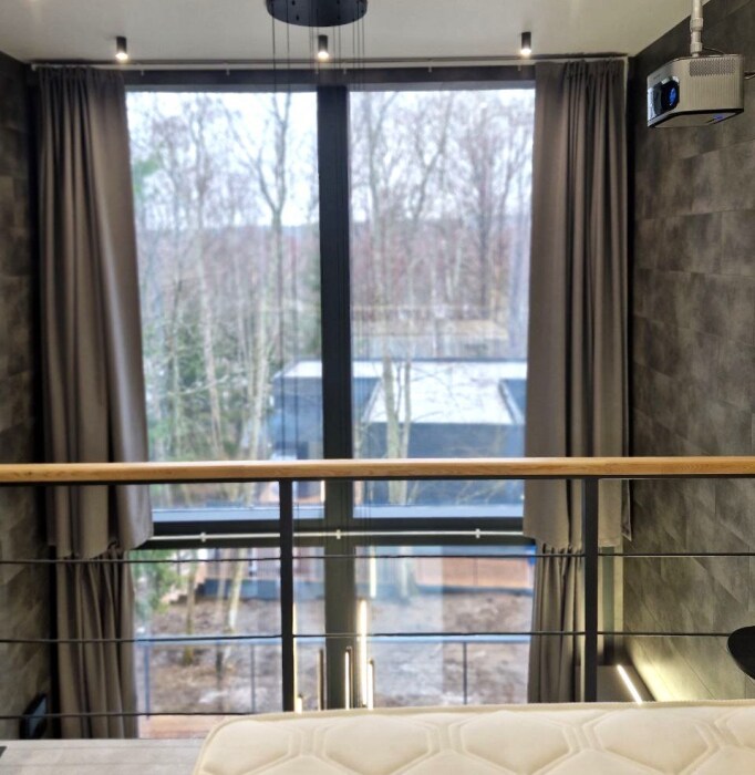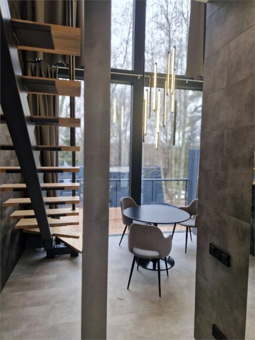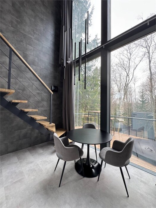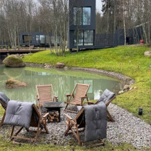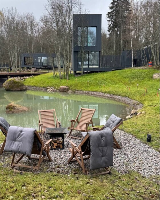 Вилла с сауной, панорамными окнами, террасой, собственной всепогодной купелью, мангалом и собственной костровой зоной.