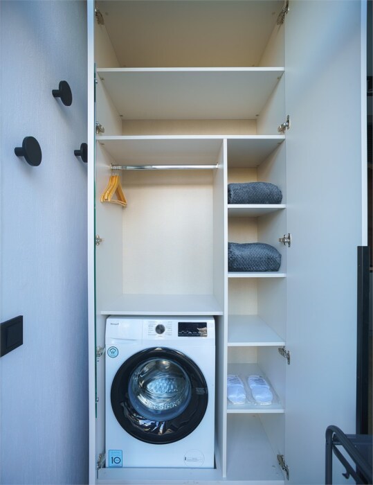 Оснащение виллы: кофейно-чайная станция, оборудованная кухня с обеденной зоной: чайник, капсульная кофемашина, холодильник, плита, посудомоечная машина, микроволновая печь, полный набор посуды, халаты, тапочки, полотенца, фен, набор гигиенических и туалетных принадлежностей, стиральная машина.