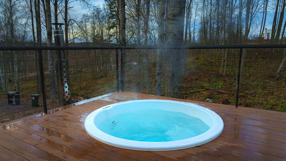 Вилла с сауной, террасой, собственной всепогодной купелью, мангалом и собственной костровой зоной.