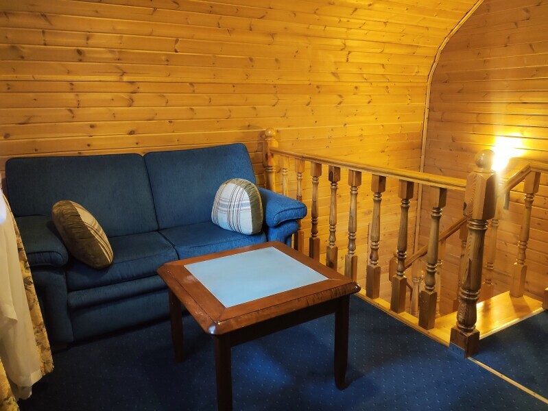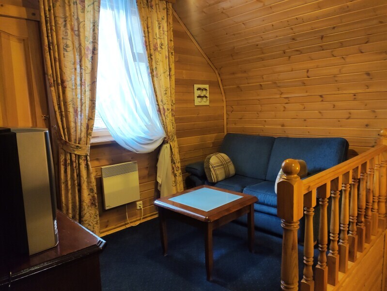 Малый коттедж - отдельно стоящий двухэтажный коттедж. На первом этаже расположены кухня, душевая и гостиная с выходом на балкон, где приятно посидеть вечерами. На втором этаже просторная спальня с двуспальной кроватью.
