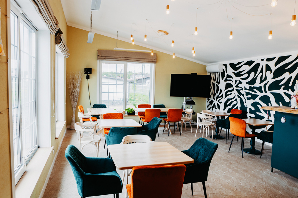 На территории клуба работает ресторан с атмосферой настоящего американского ранчо — с блюдами, приготовленными из натуральных продуктов, и уютным интерьером с камином и панорамными окнами, погружающим в дух приключений. Для лёгких перекусов и душевных встреч подойдёт уютное кафе с домашней кухней и ароматным кофе.