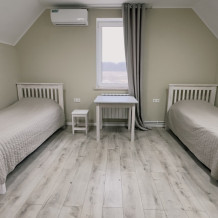 Уютные апартаменты 30 м² с отдельным входом на втором этаже — отличный вариант для двух гостей. Светлая комната с двумя односпальными кроватями, кухня с техникой и посудой, санузел с душевой кабиной. В наличии TV, Wi-Fi, стиральная машина, постельное бельё и полотенца. Парковка рядом с домом.