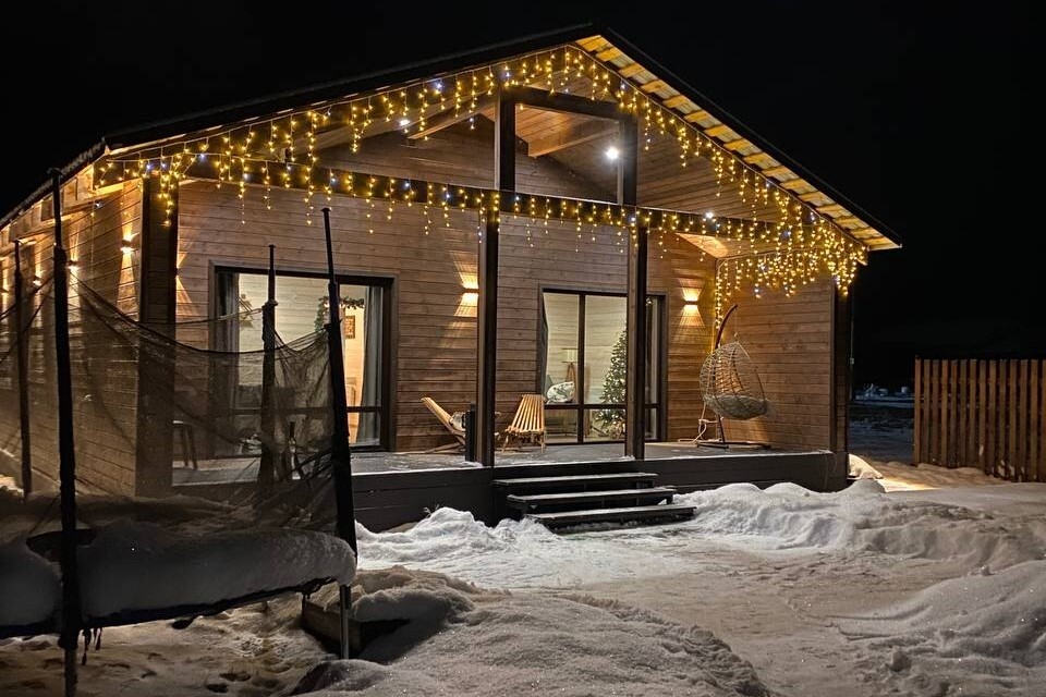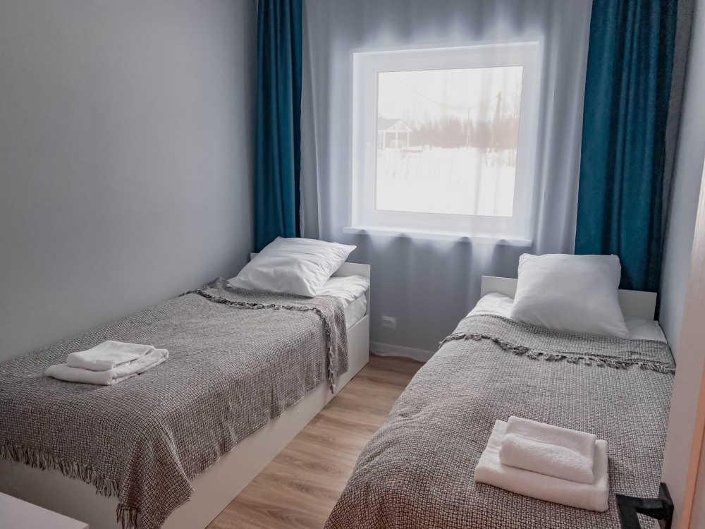 В доме: 3 спальные комнаты (2 комнаты с кроватями 160*200, 1 комната с двумя кроватями 90*200, так же в гостиной расположен диван).
