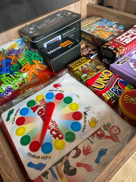 - Настольные игры: набор для покера, «Твистер», «Башня», «Мафия», Uno и др.