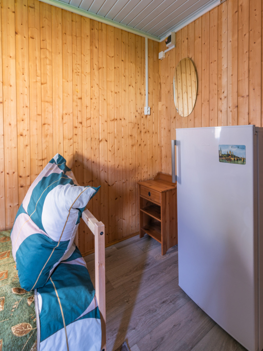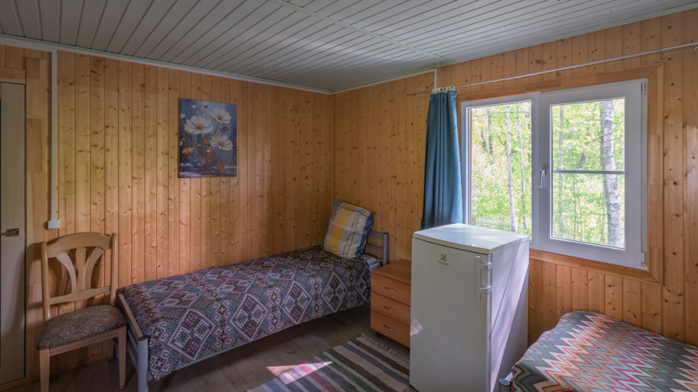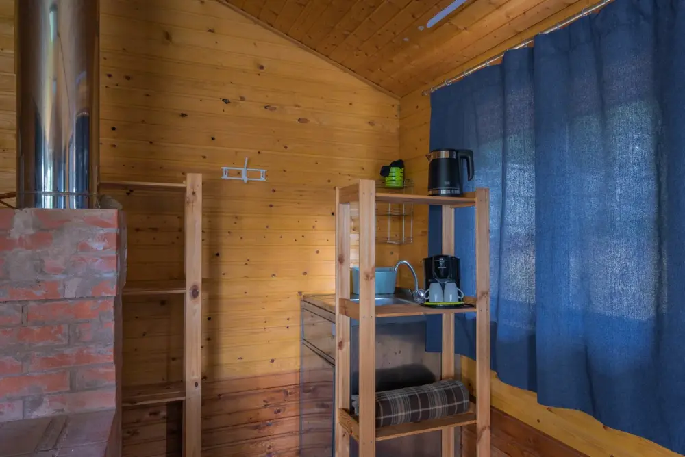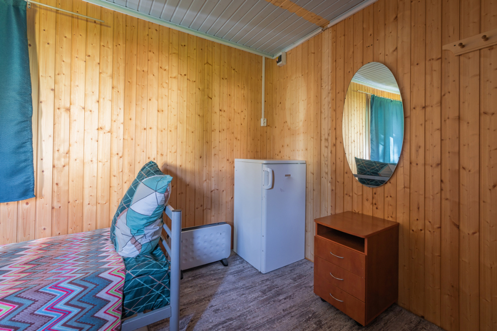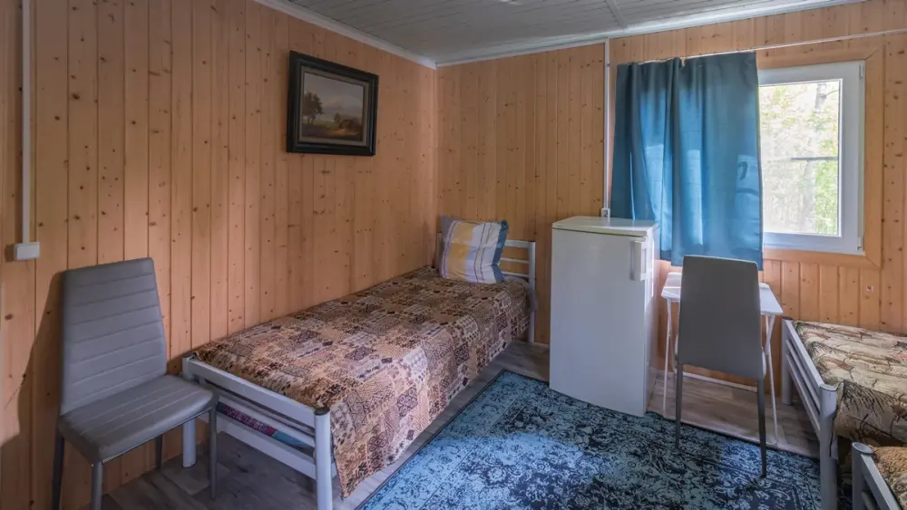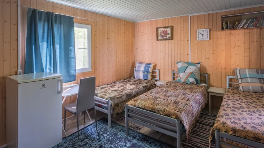 В домике: холодильник, москитная сетка на окнах, обогреватель (при необходимости), полутора спальные кровати, кофеварка, тостер.