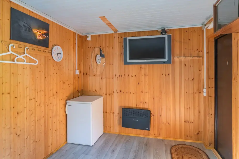 В домике: холодильник; москитная сетка на окнах; обогреватель (при необходимости).