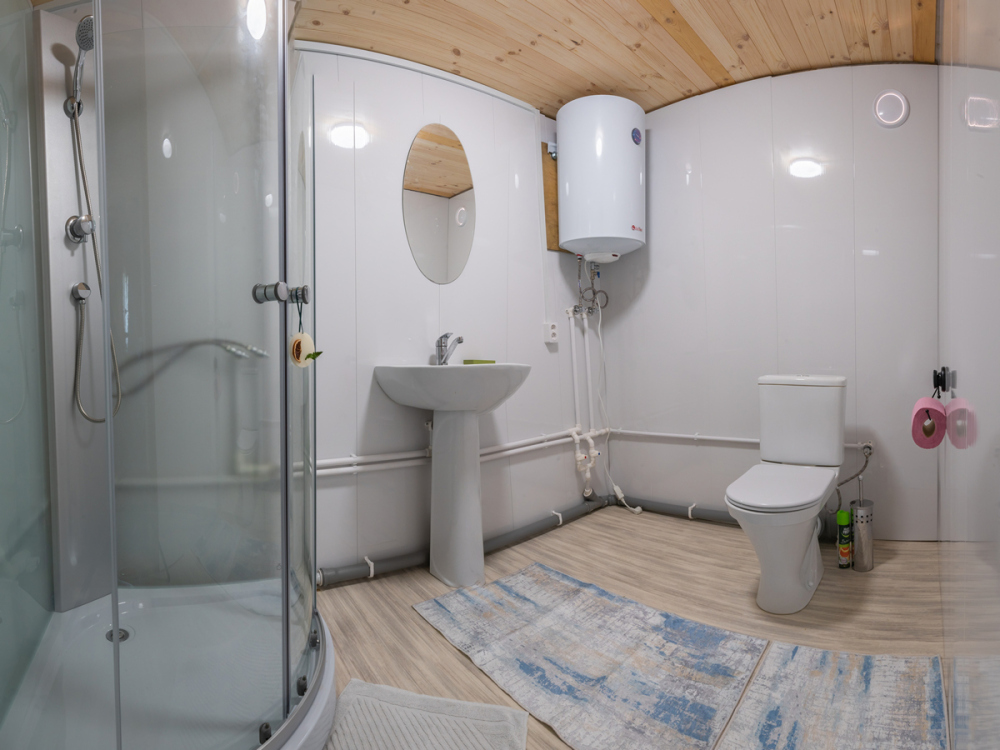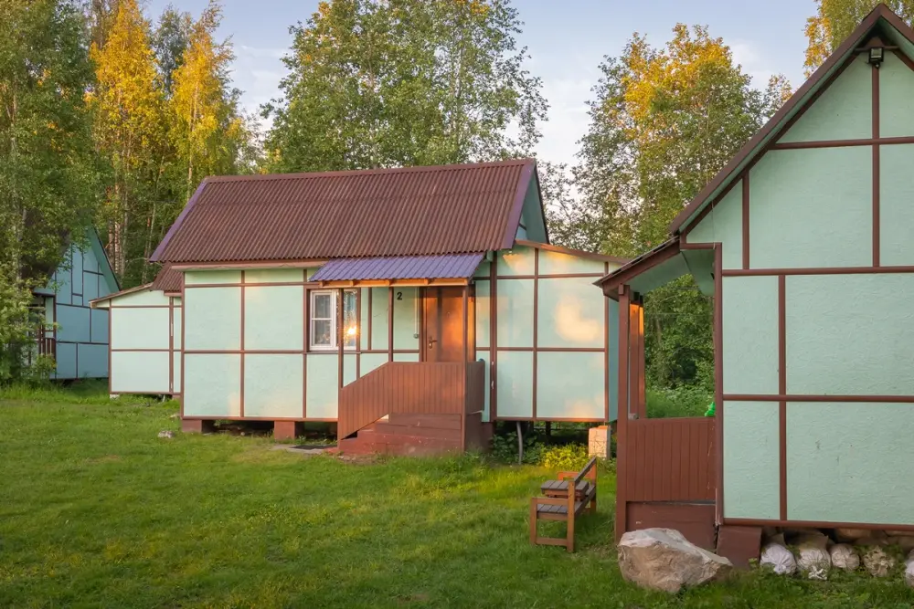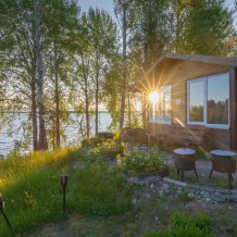 - 6 домиков – 2 с удобствами, 3 с удобствами на улице и 1 видовой домик с панорамными окнами и невероятным видом на озеро, где можно наслаждаться утренним рассветом и вечерним закатом.