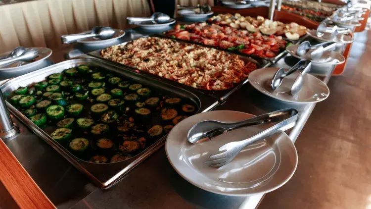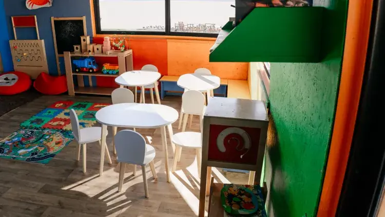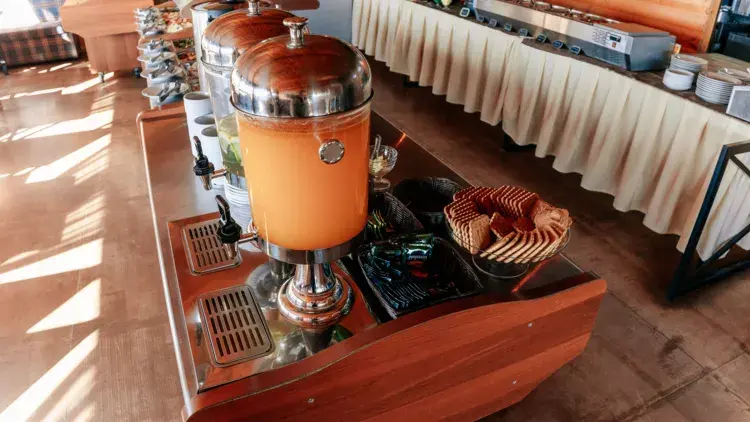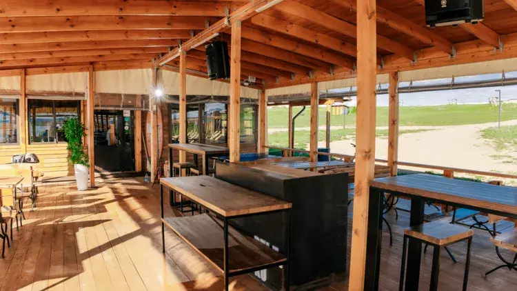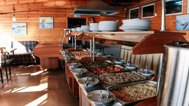 На территории работает кафе, где можно заказать вкуснейшие блюда русской и европейской кухни. В баре представлен широкий ассортимент алкогольных и безалкогольных напитков, а также легких закусок.
