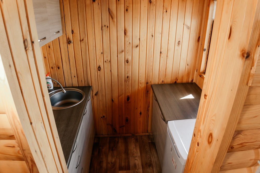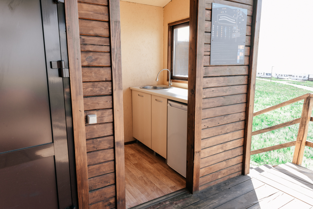 Домик относится к категории повышенной комфортности. Внутри оборудован санузел: туалет и горячий душ.
