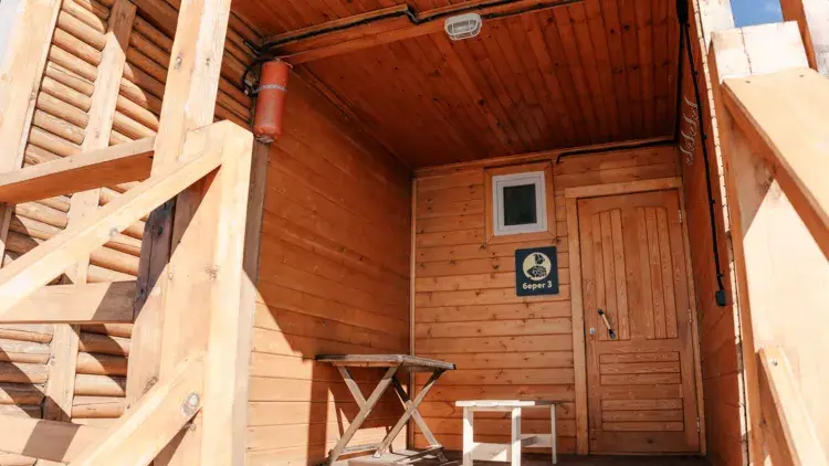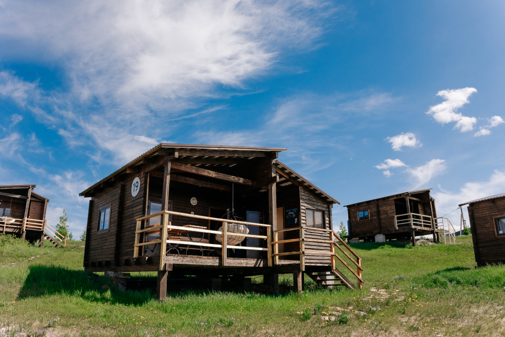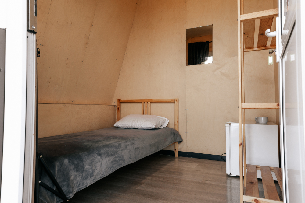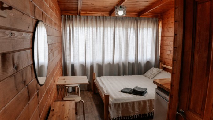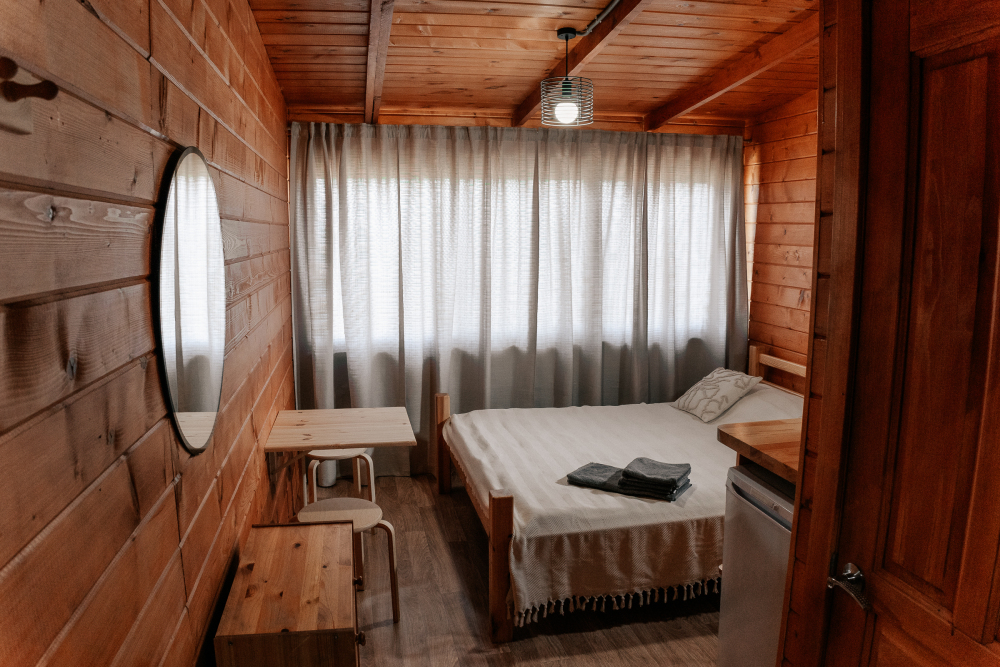 Для размещения предлагаются домики, максимальной вместимостью до 8 человек. Они располагают удобными кроватями, функциональной мебелью и современной техникой. В некоторых вариантах размещения есть собственный санузел с душем, туалетом и раковиной.
