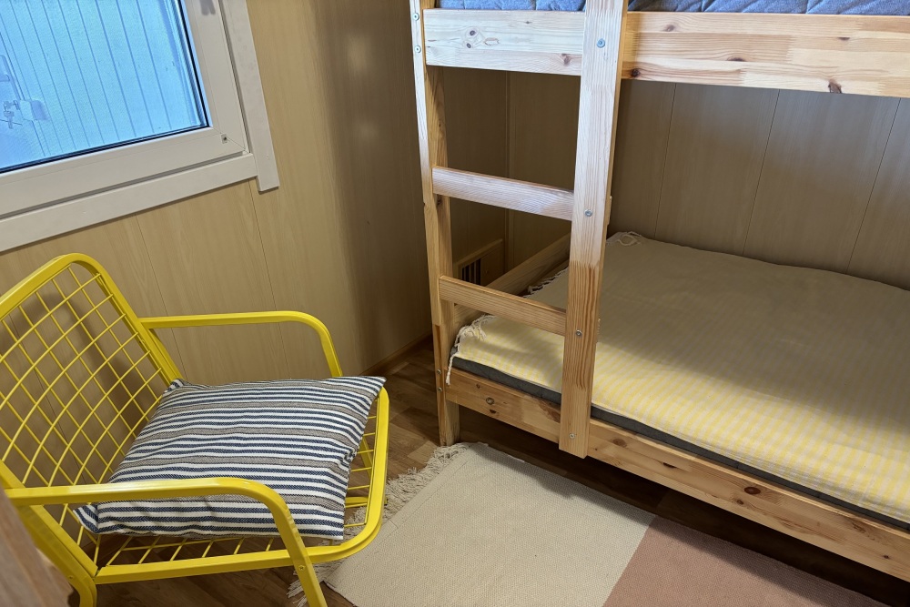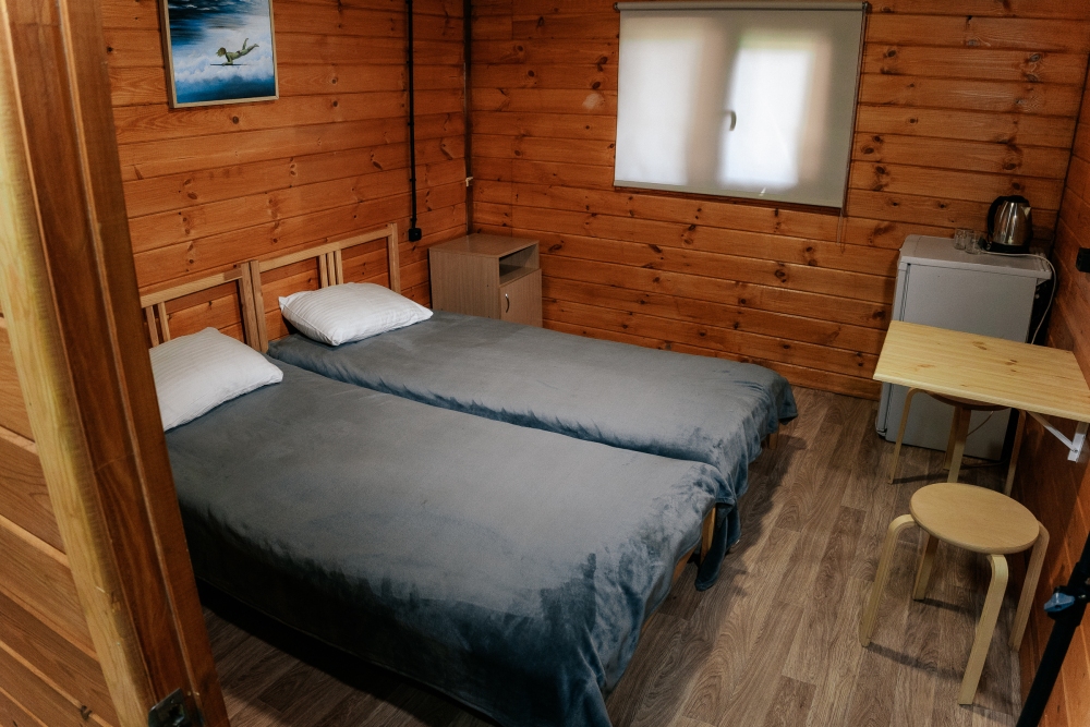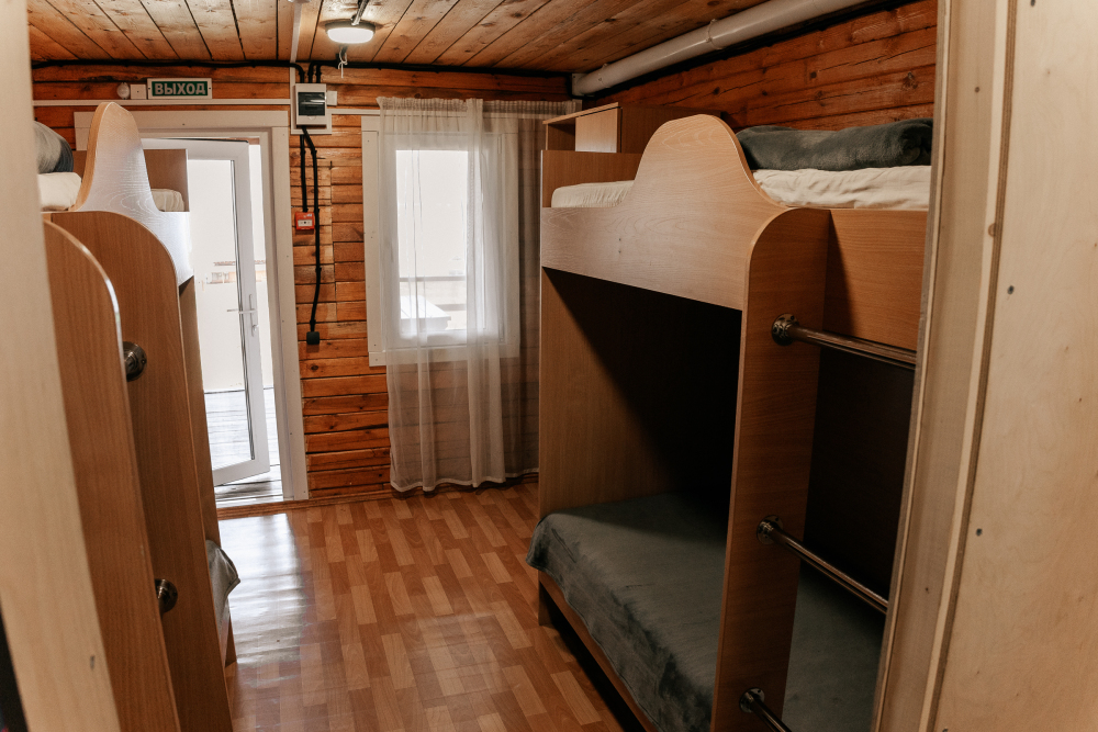 Номера расположены на первом этаже гостиничного корпуса. В номере стоят две двухъярусные кровати. В комнатах есть тумбочки, зеркало, чайник и мини-холодильник.