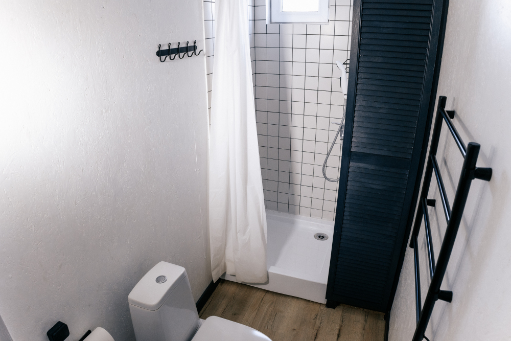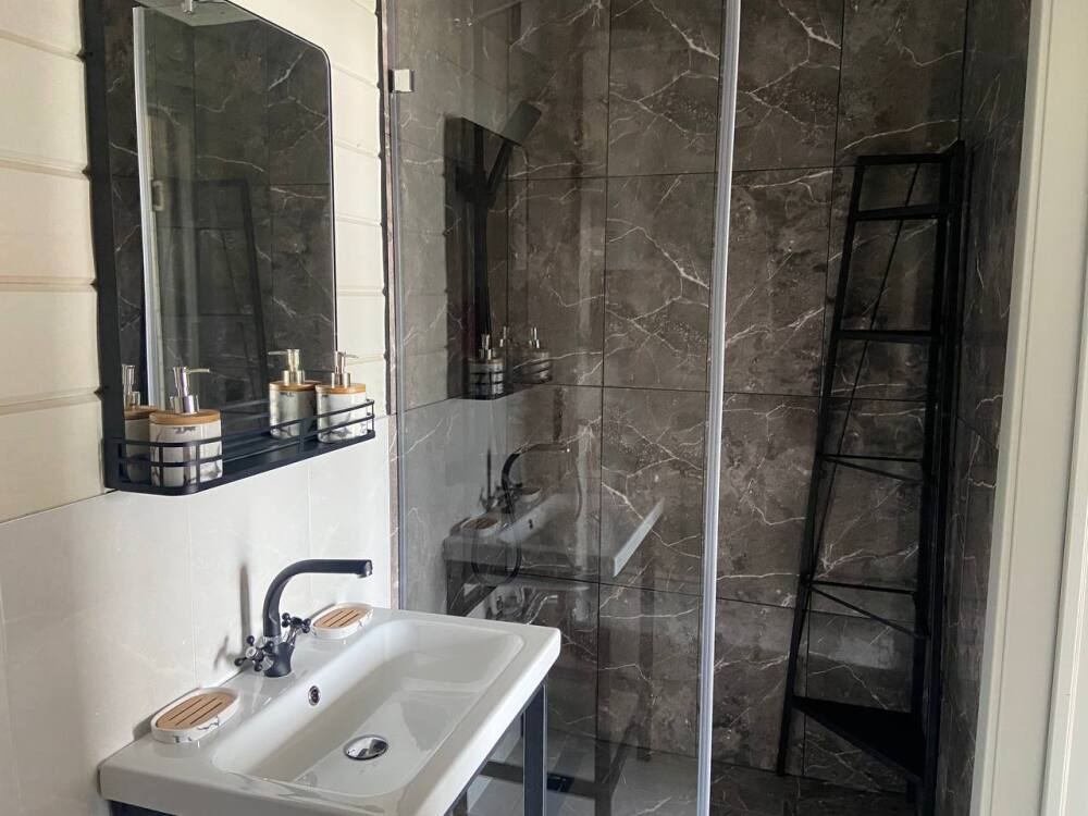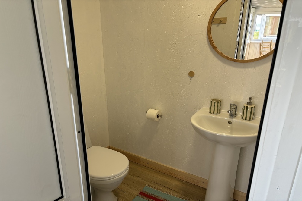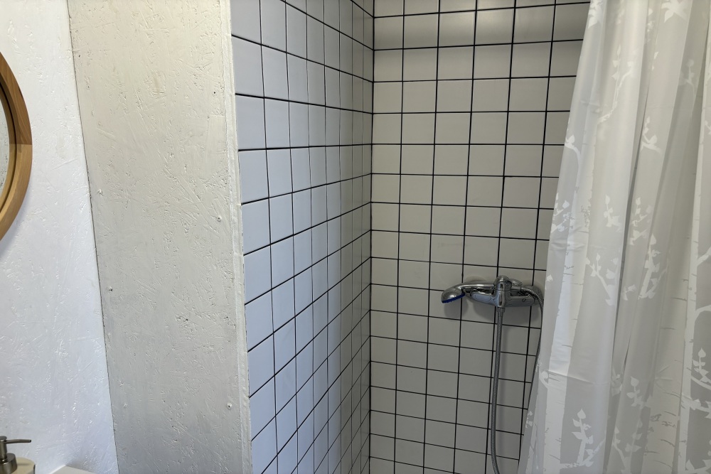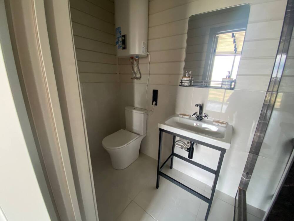 Номер оснащен санузлом с отдельным входом с террасы: туалет и горячий душ.