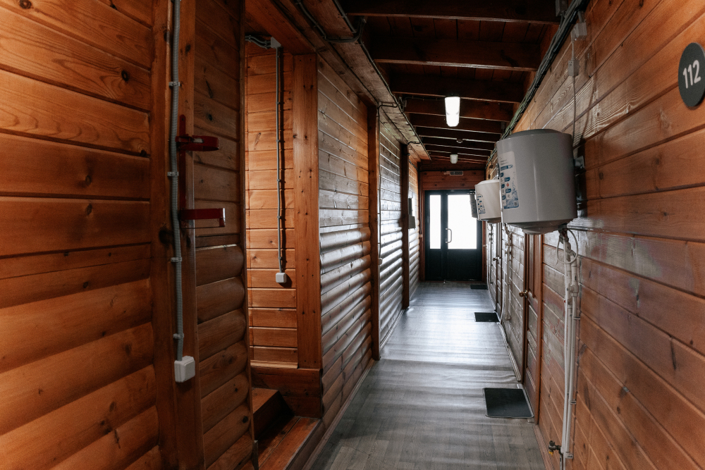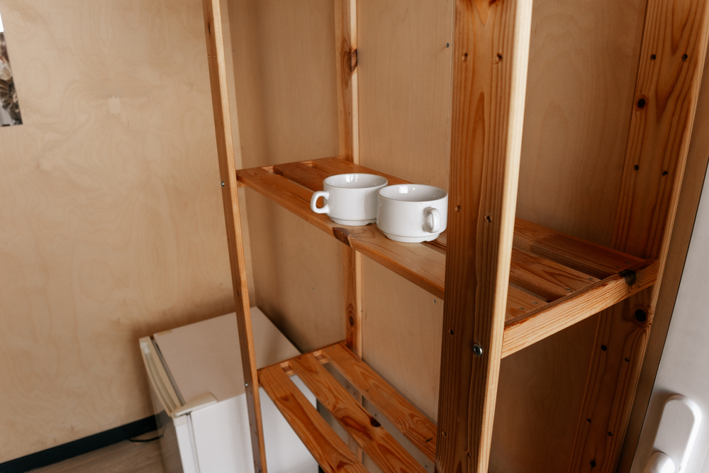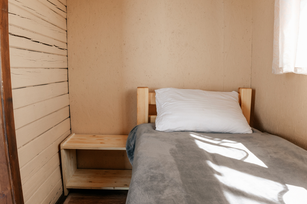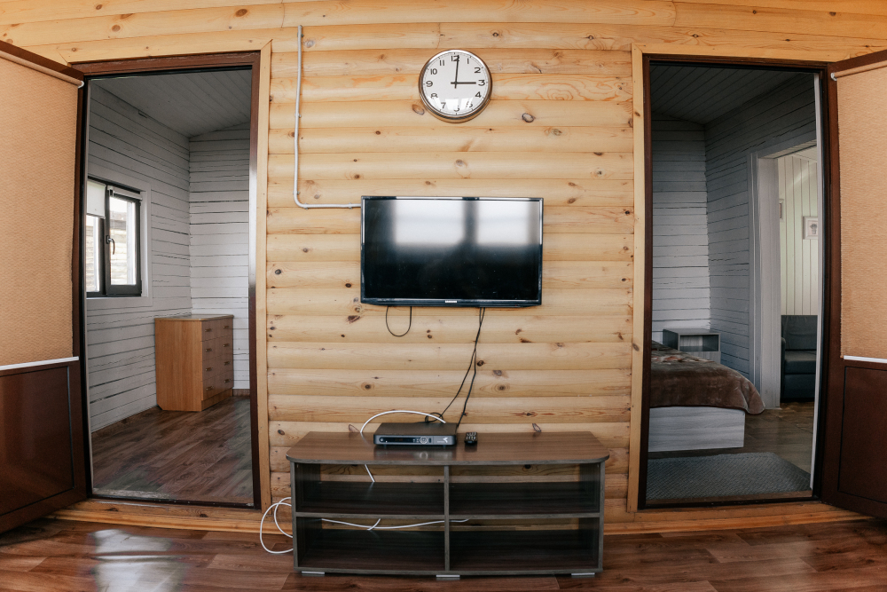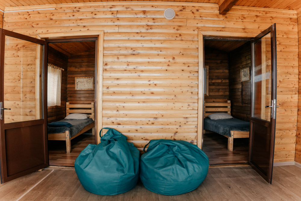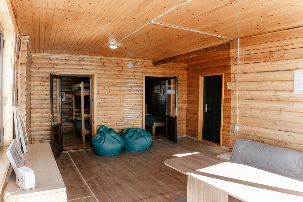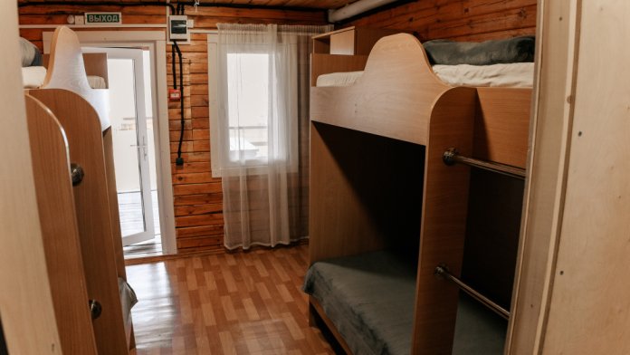В каждой спальне расположены кровати — односпальная, двуспальная и двухъярусная. Также для удобства гостей в комнатах есть полки, зеркало, холодильник, чайник, плитка, посуда и постельные принадлежности.