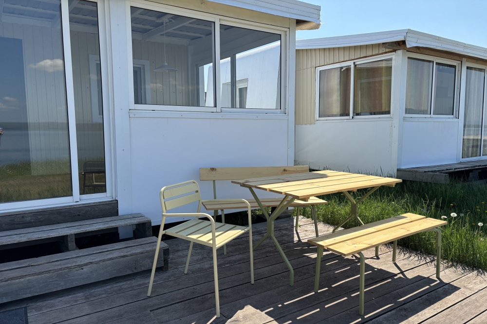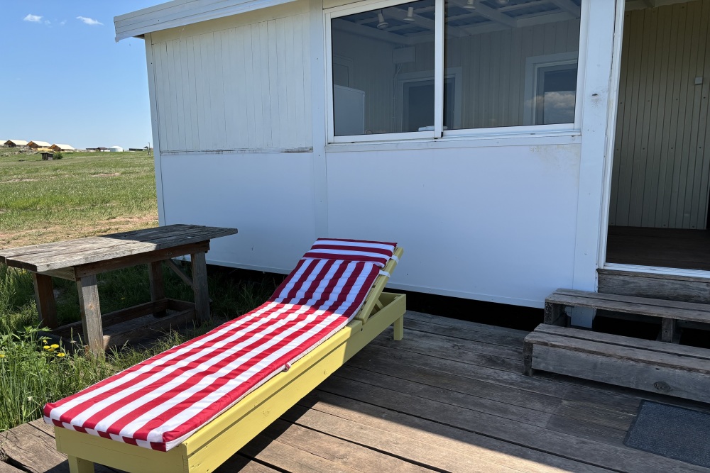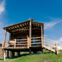 Комфорт состоит из двух одноместных комнат с отдельным входом в каждую с террасы. Терраса с видом на озеро оборудована столиком и стульями. В комнате односпальная кровать, полки, зеркало, постельные принадлежности. Есть чайник и мини-холодильник.
