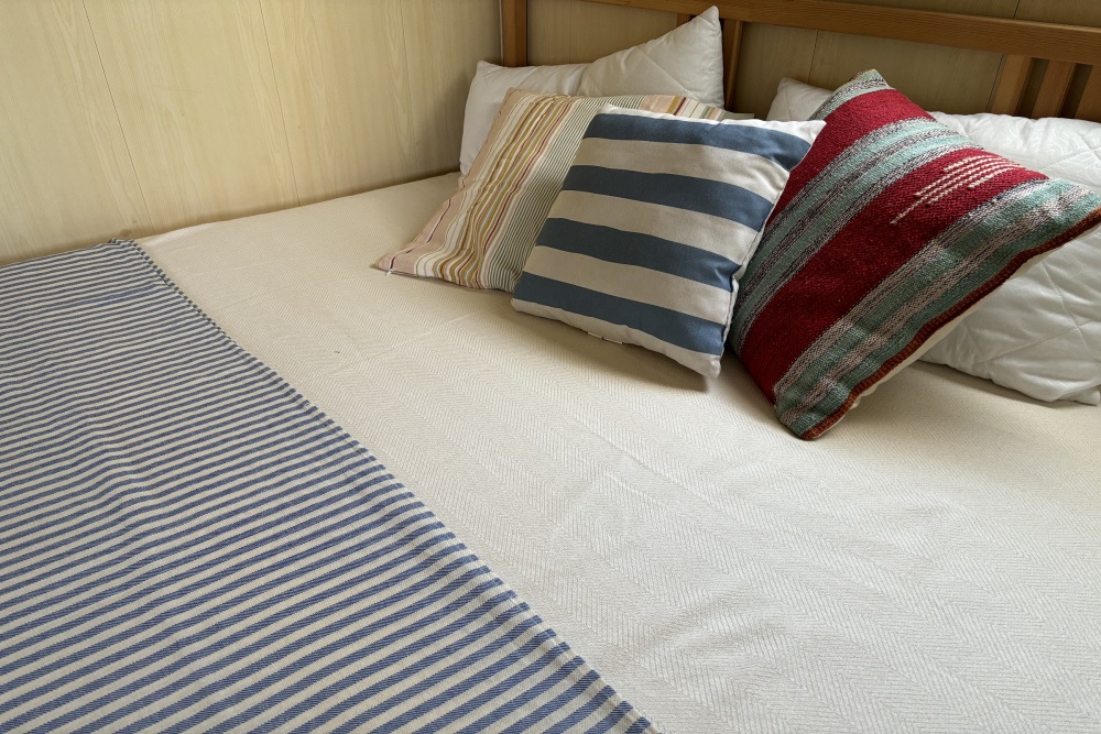 Первая комната рассчитана на 3-х человек. Спальные места предусмотрены на двухъярусной кровати (нижний ярус двуспальный, верхний ярус односпальный).