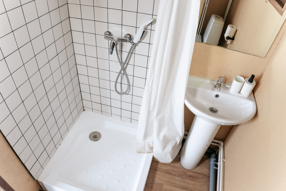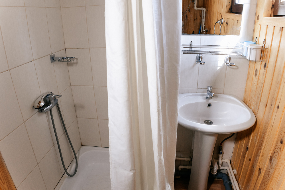 Номер оснащен санузлом: туалет и горячий душ.