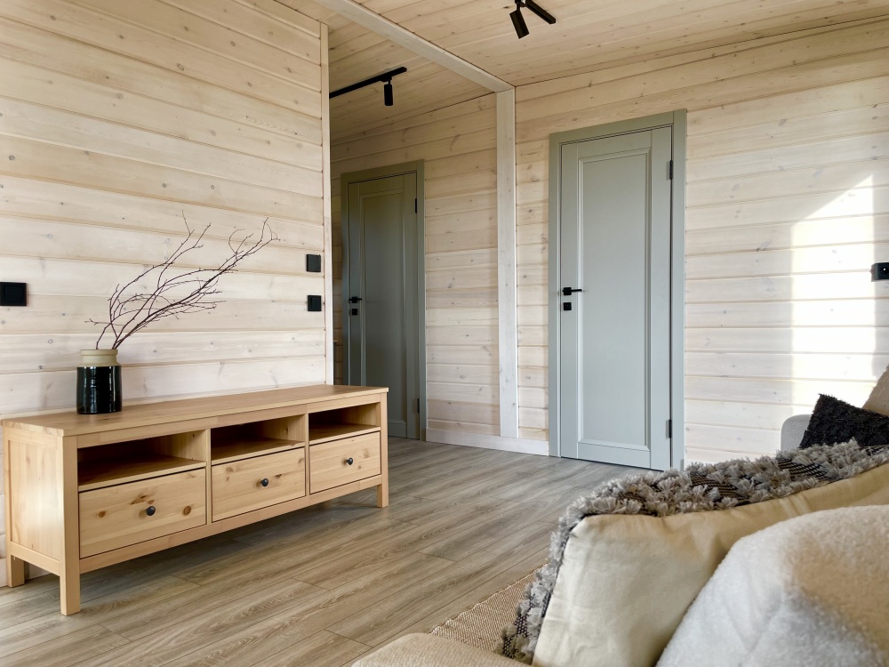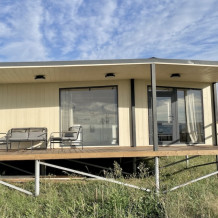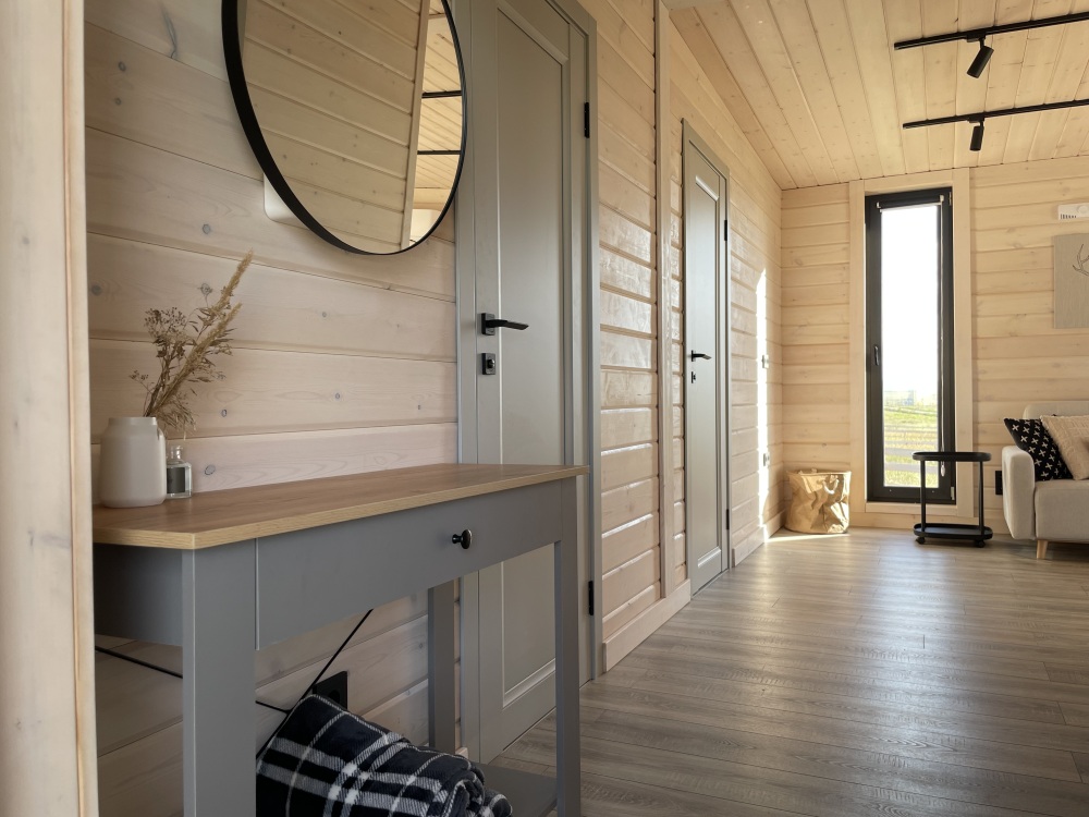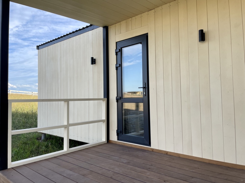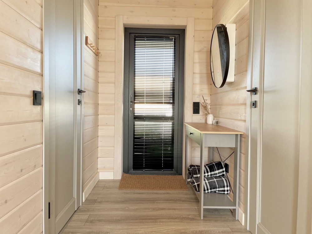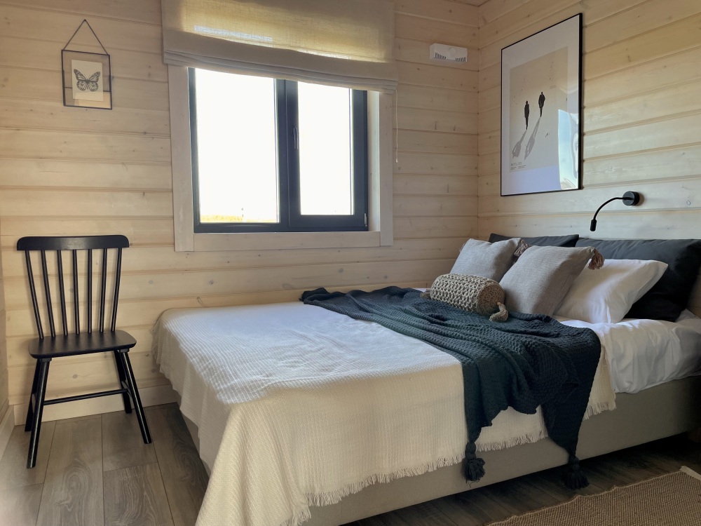 Дом идеально подойдет для отдыха семьей или компанией. В домике 2 спальни, гостиная и санузел - туалет и горячий душ. В первой комнате расположена двухъярусная кровать, во второй комнате стоит двуспальная кровать. В гостиной спальное место предусмотрено на диване. Есть шкафы, полки, зеркало и постельные принадлежности.