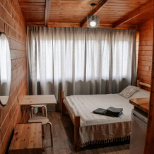 Номер оснащен деревянной мебелью - односпальные кровати, полки, комод. Здесь есть холодильник, чайник и постельные принадлежности. Окна данных номеров выходят на хозяйственный двор. В номере есть санузел: туалет и горячий душ. Приготовить пищу можно на общей, оборудованной всем необходимым, кухне, расположенной в этом же корпусе.