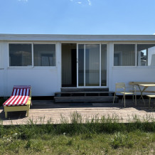 Домик с обновленным дизайном и ремонтом идеально подойдет для семейного отдыха. В комнате расположены большая двуспальная и одна двухъярусная кровати. Есть кондиционер, полки, зеркало, комод и постельные принадлежности.