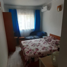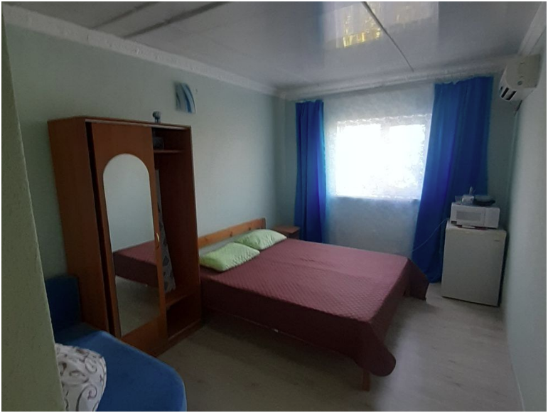 номер со всеми удобствами и встроенной мини-кухней. В Номере две кровати, диван, вешалка для одежды с зеркалом, тумба для обуви, прикроватные тумбочки, журнальный столик, вентилятор, стеклопакеты, москитные сетки. Отделан современными материалами.