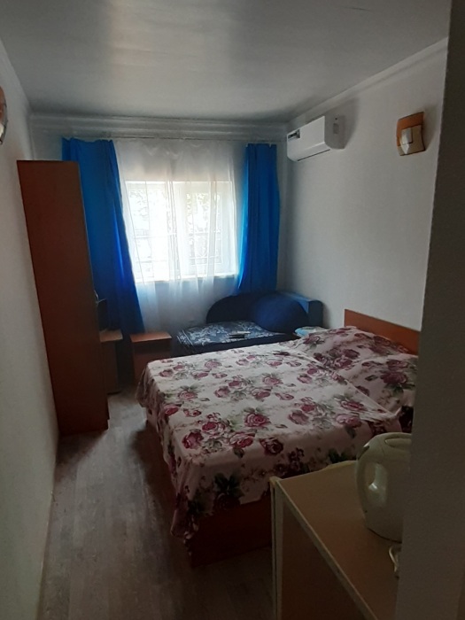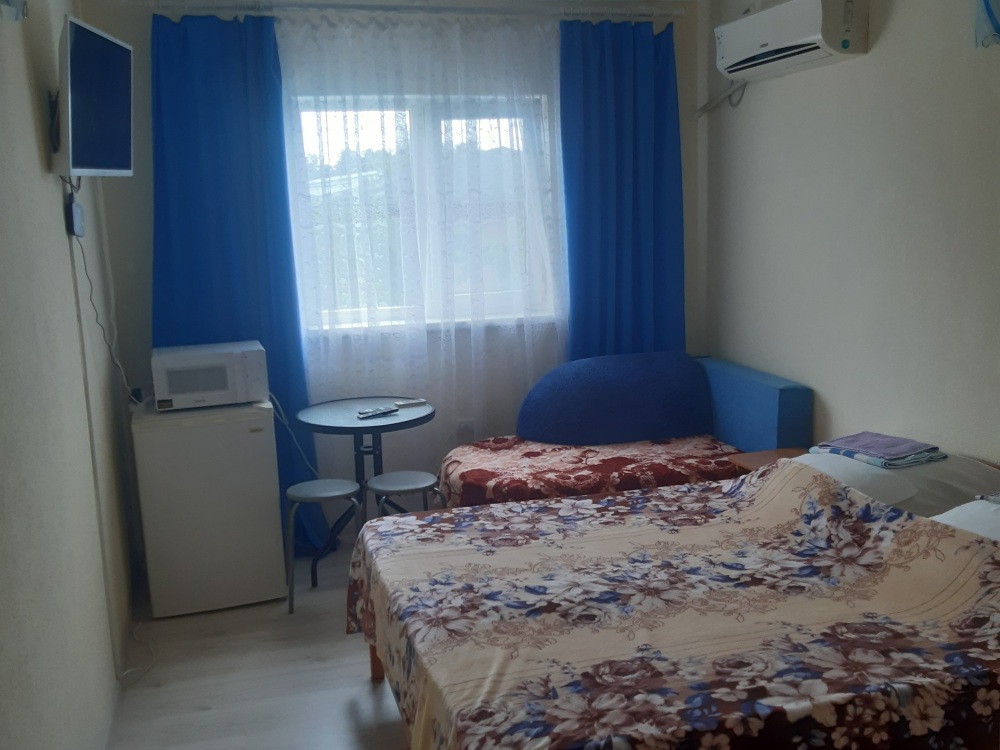 Стандартный трехместный номер со всеми удобствами. в Номере две кровати, диван, вешалка для одежды с зеркалом, тумба для обуви, прикроватные тумбочки, журнальный столик, вентилятор, стеклопакеты, москитные сетки. Отделан современными материалами.