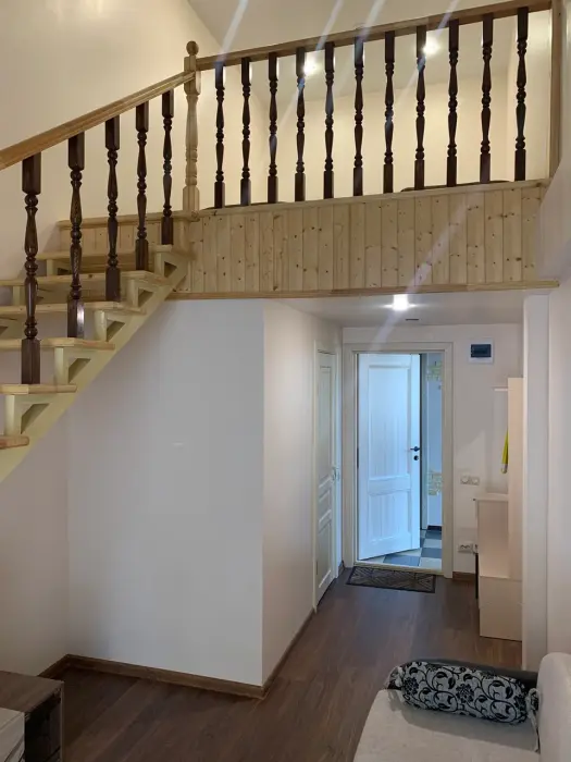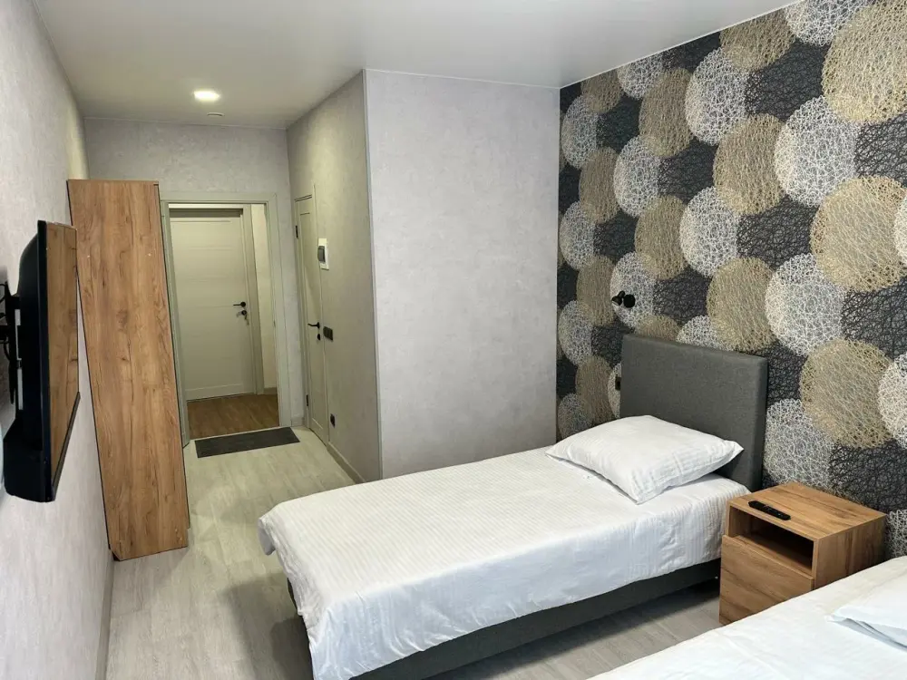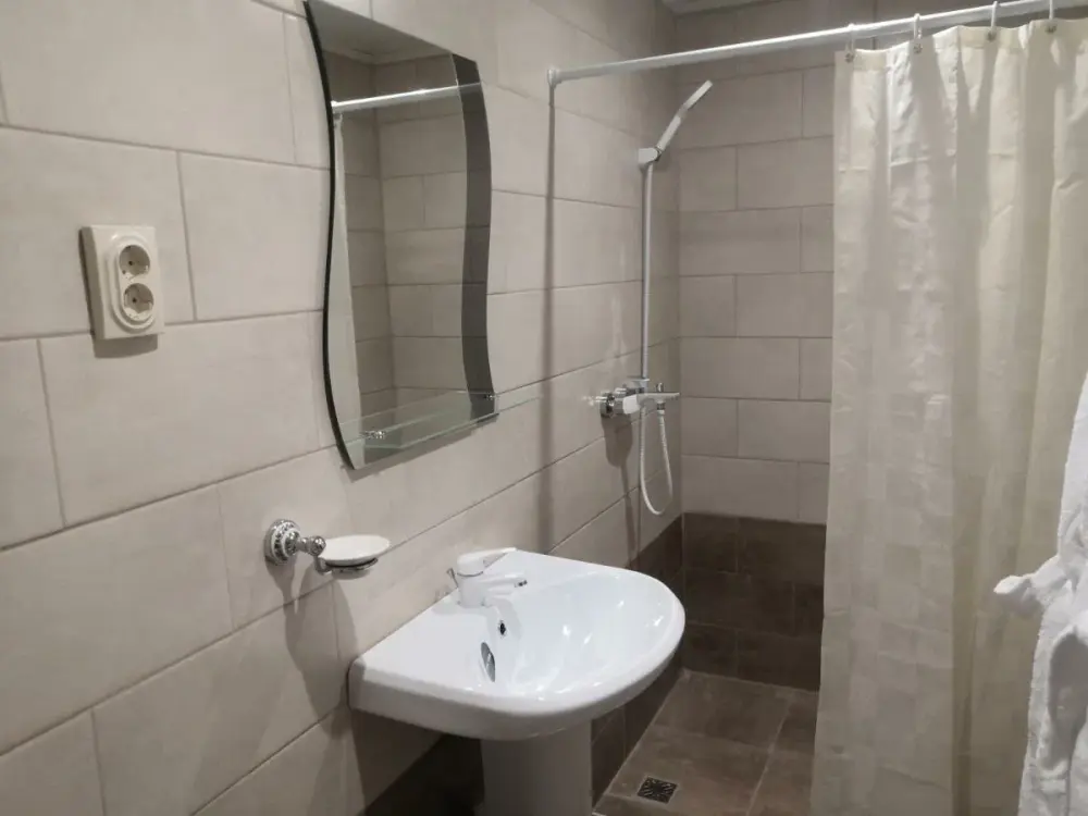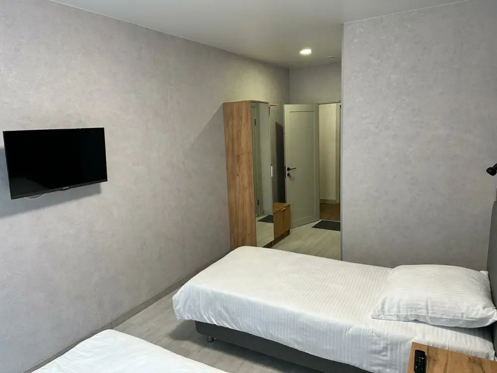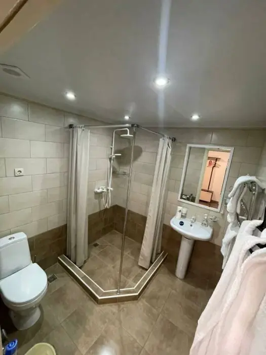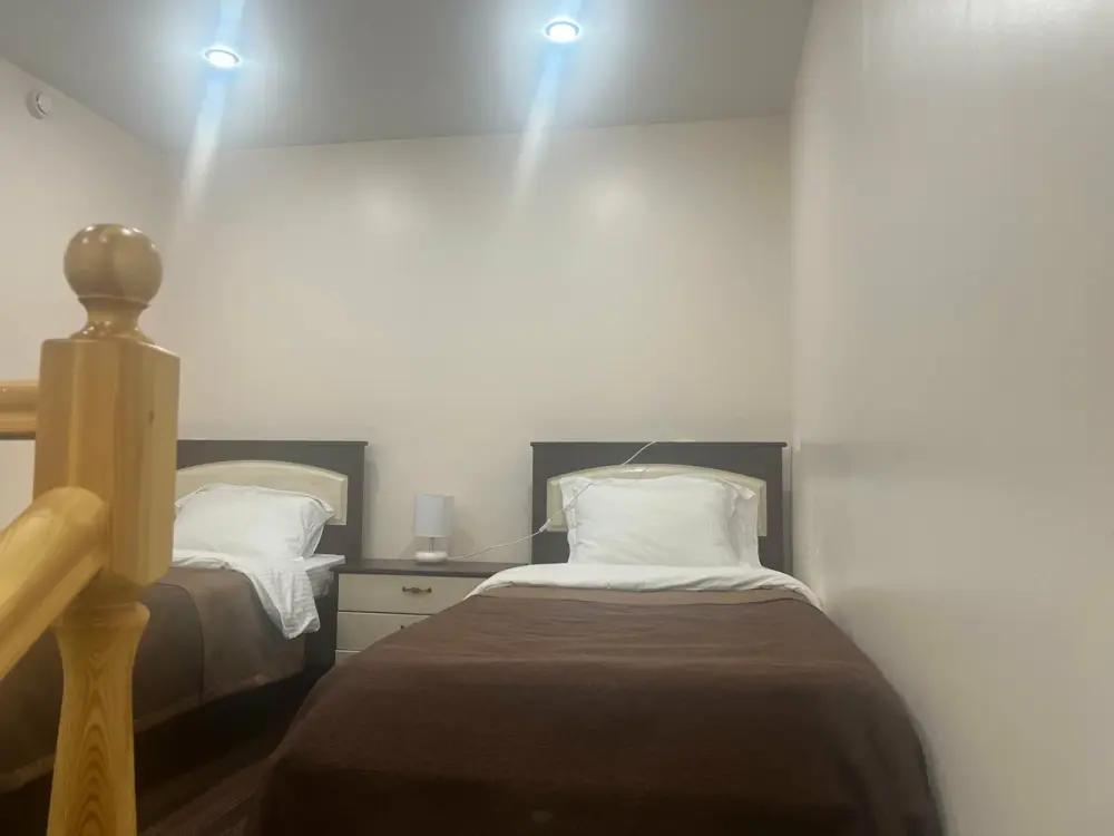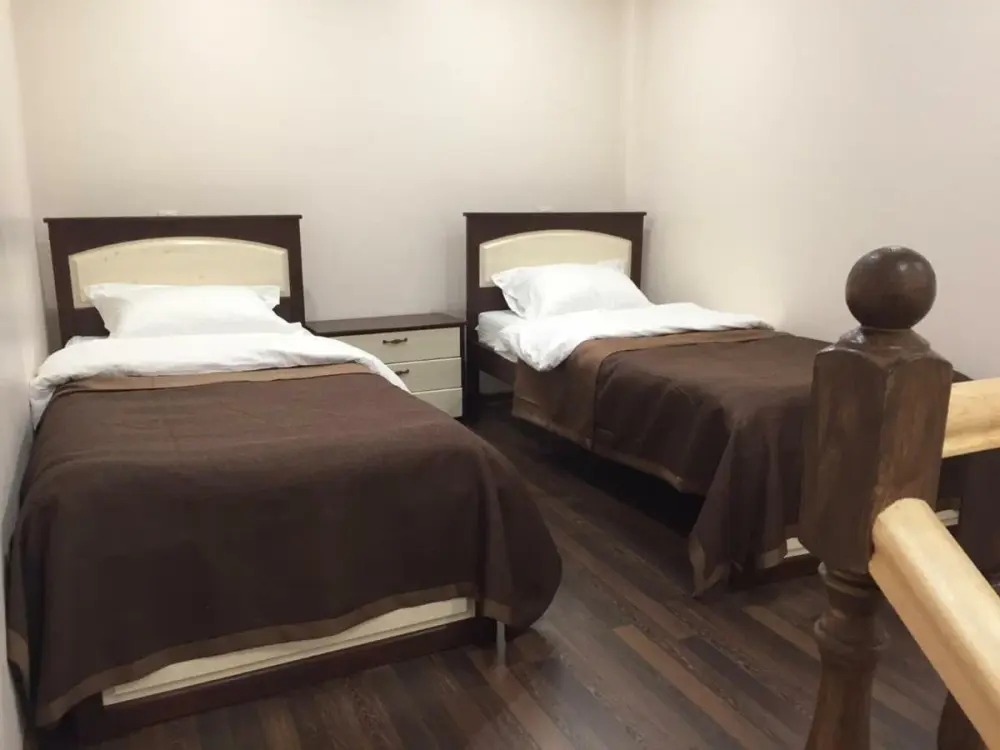 Номера двухуровневые, с телевизором, феном, душем и туалетом.