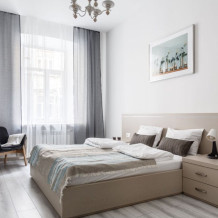 - Удобная двуспальная кровать формата King Size в спальне, диван на кухне.