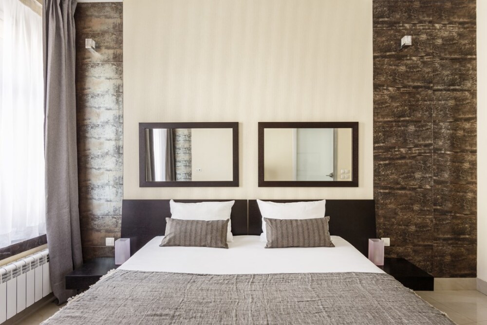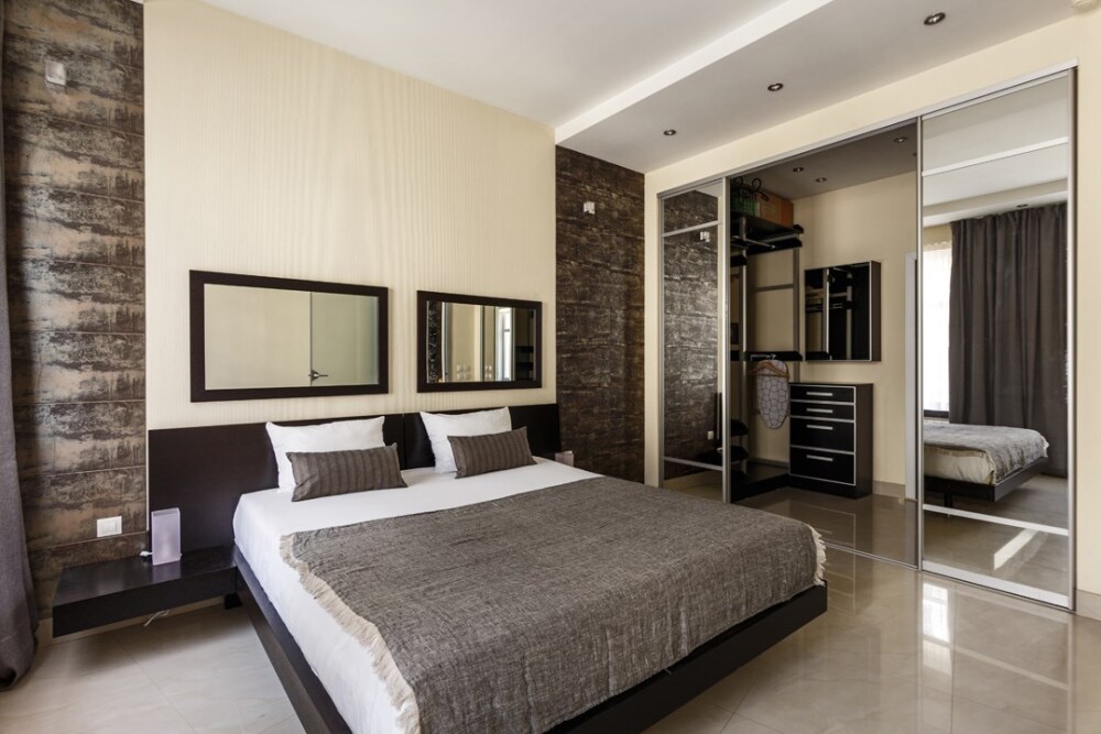 - Удобная двуспальная кровать формата 180 см в спальне и двуспальный диван в гостиной.