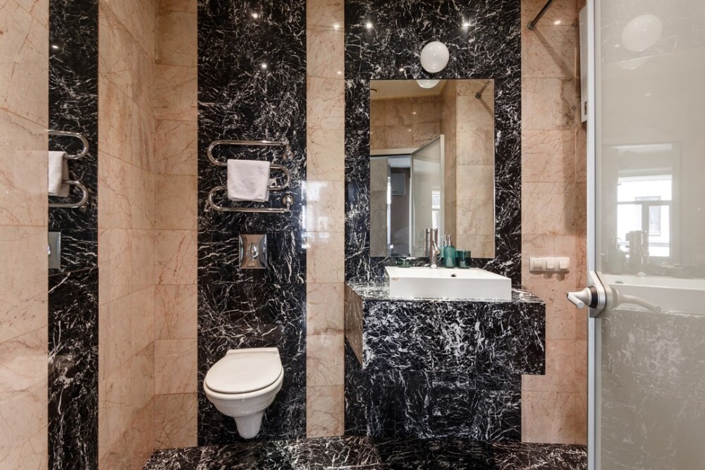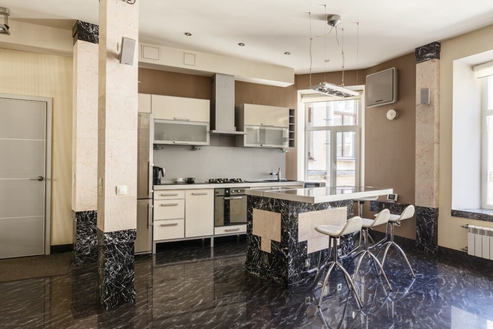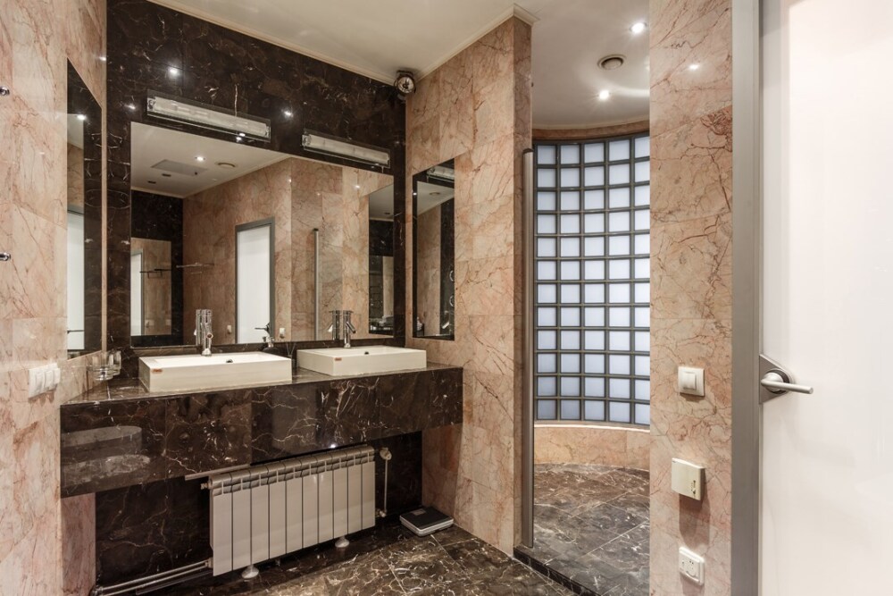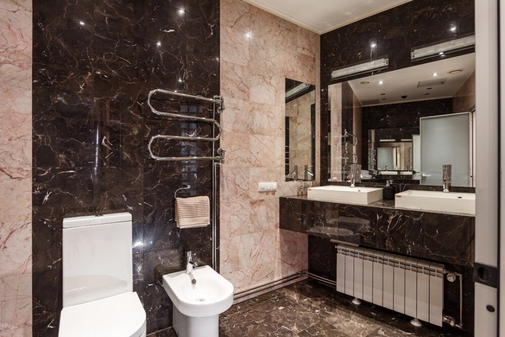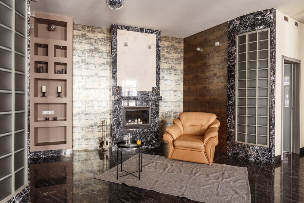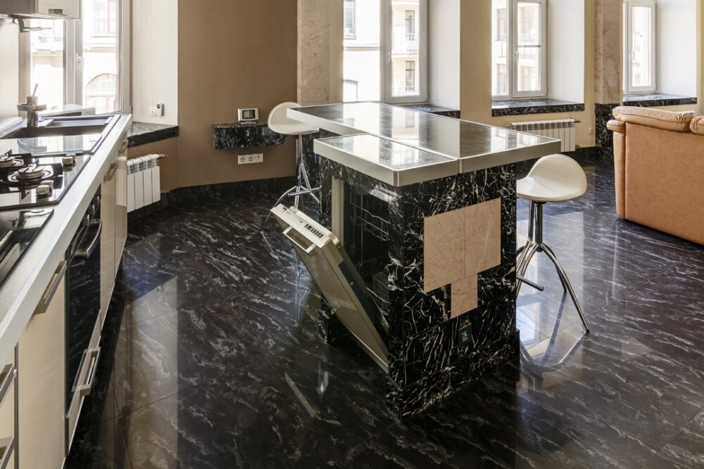 - Дизайн квартиры в эклектичном «мраморном» стиле.