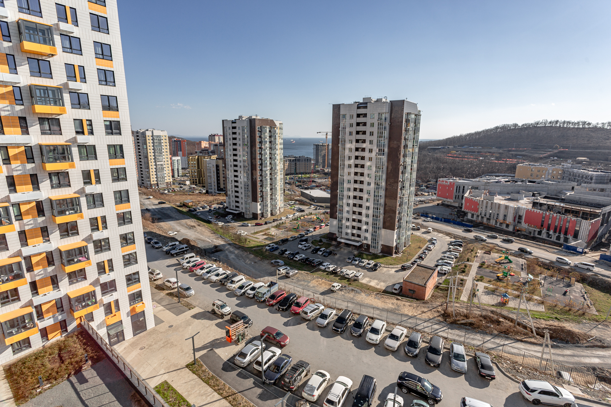 Развязка на выезд из города, в город и на о. Русский. Рядом имеются магазины, супермаркет, кафе и т.д. Автобусная остановка в 5мин. Прекрасный современный двор, где расположены: спортивная площадка, детская площадка, баскетбольное поле, места отдыха.