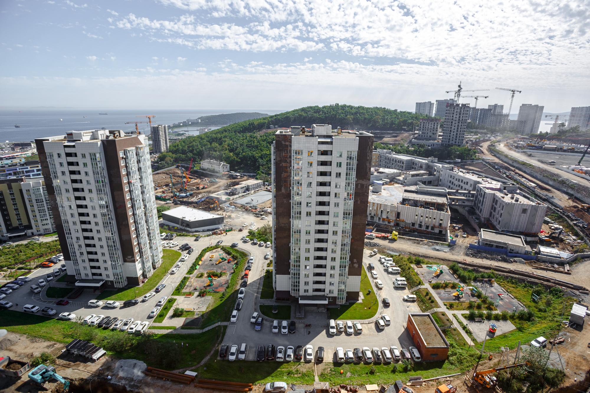 Развязка на выезд из города, в город и на о. Русский. Рядом имеются магазины, Супермаркет, кафе и т.д. Автобусная остановка в 5мин. Прекрасный современный двор, где расположены: спортивная площадка, детская площадка, баскетбольное поле, места отдыха.