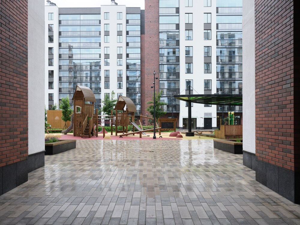 Прямо в доме: кофейни, салоны красоты, аптека, продуктовые магазины, Вкусвилл, салон йоги, массажа.