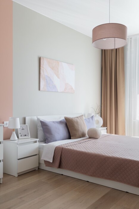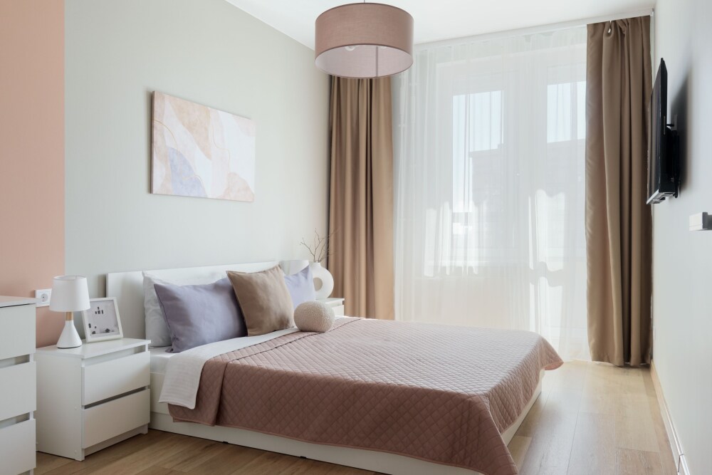 Удобные спальные места. В апартах приятно находиться, много воздуха и света, вдохновляющая атмосфера продуманного стильного дизайна, есть застекленная лоджия, с зоной отдыха.
