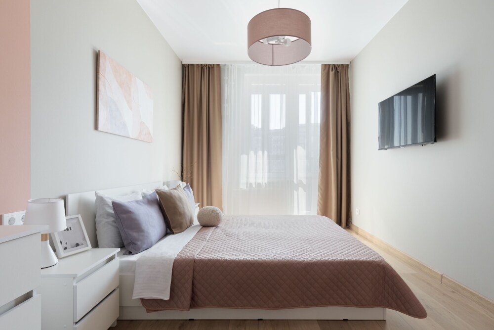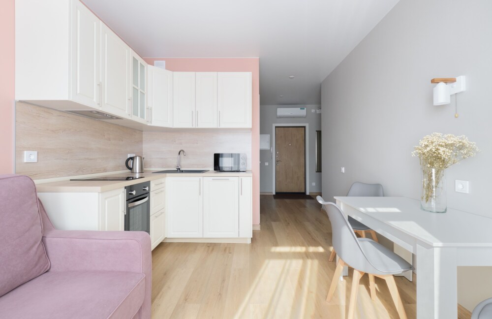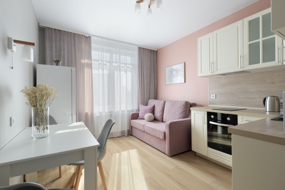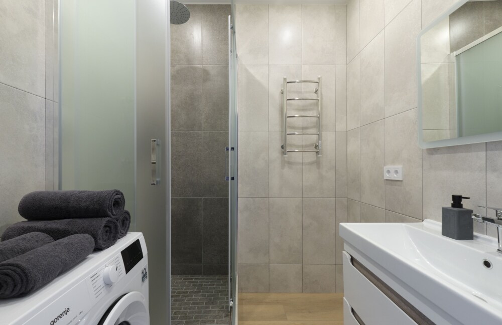 Перед заселением проводится тщательная уборка квартиры (горничная работает по чек-листам, чтобы ничего не пропустить). Чистота - это наше главное преимущество!