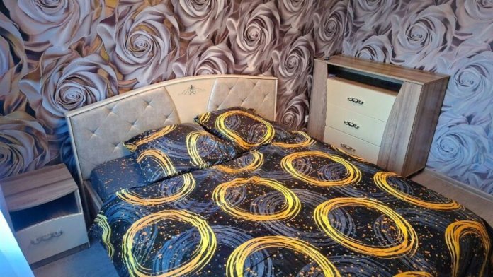 Мастер-спальня: двуспальная кровать 180х200 см с качественным постельным бельём. Уникальное освещение.