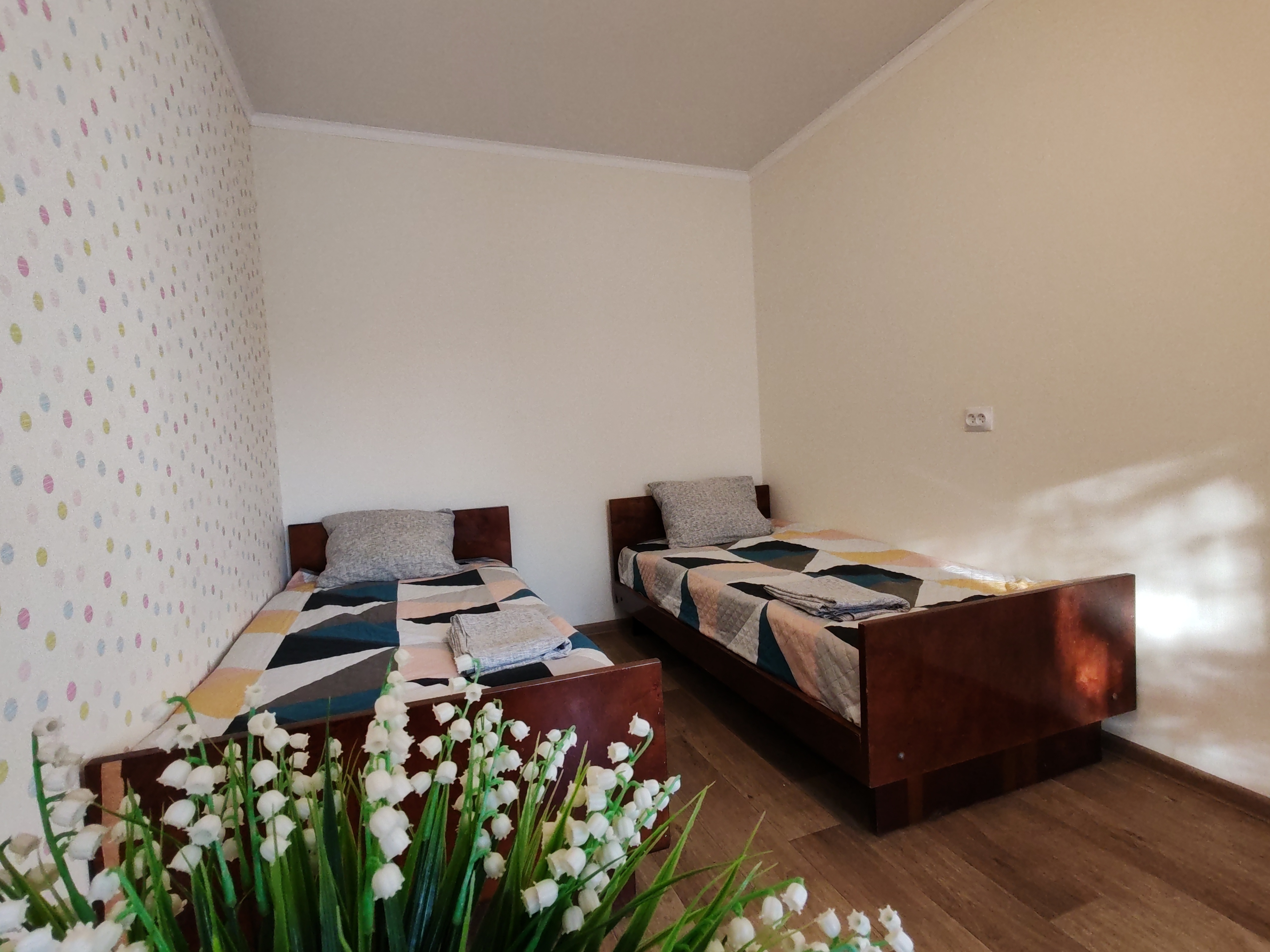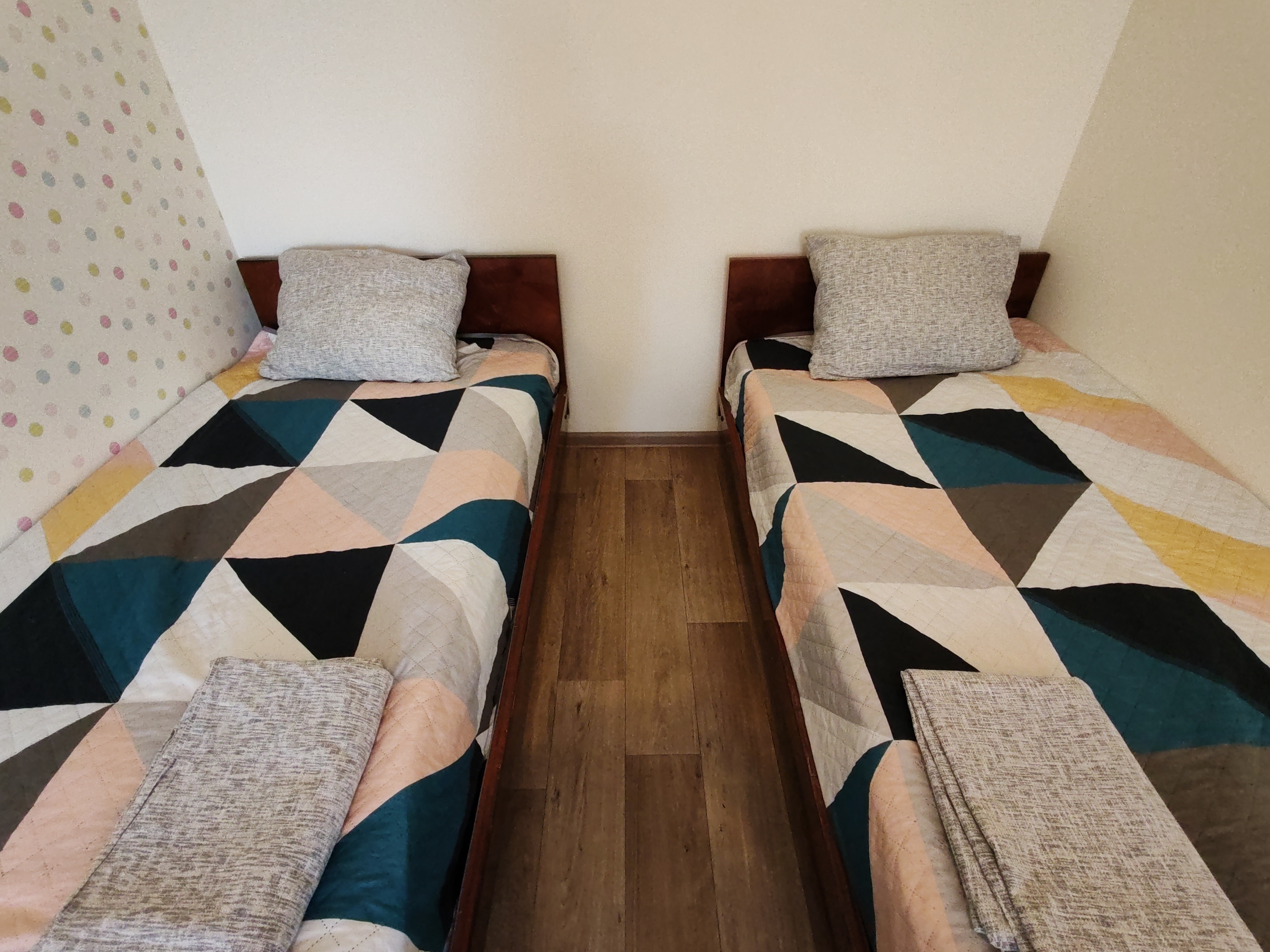 Для бронирования нужно выбрать необходимые даты и правильно указать количество гостей, если Вас два гостя, но нужны раздельные спальные места, выбирайте тариф для 3-х гостей.