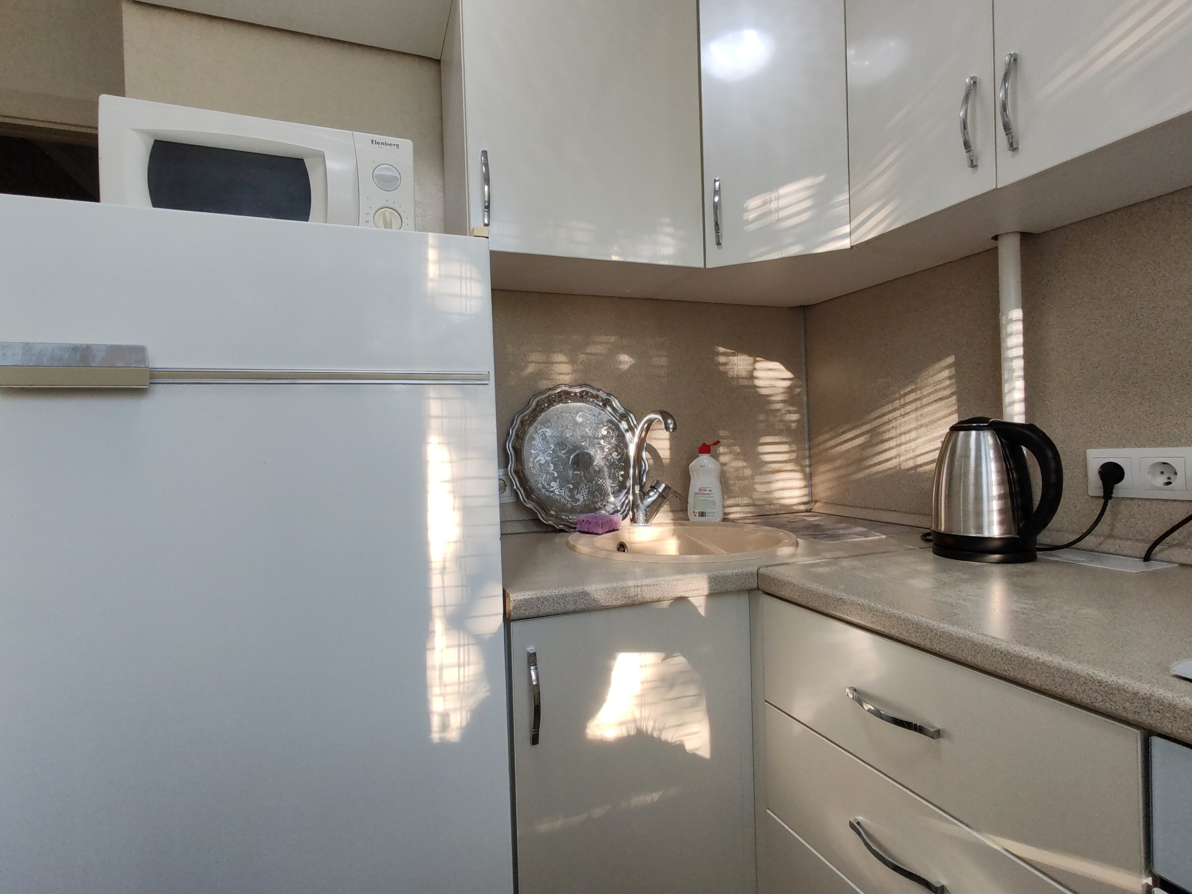 - Столовая посуда и необходимый набор посуды для приготовления еды, чайник и микроволновая печь, плита и духовка.