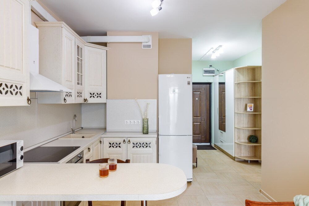 Техника: телевизор с Smart TV, высокоскоростной Wi-Fi, стиральная машина, сушилка для белья.
