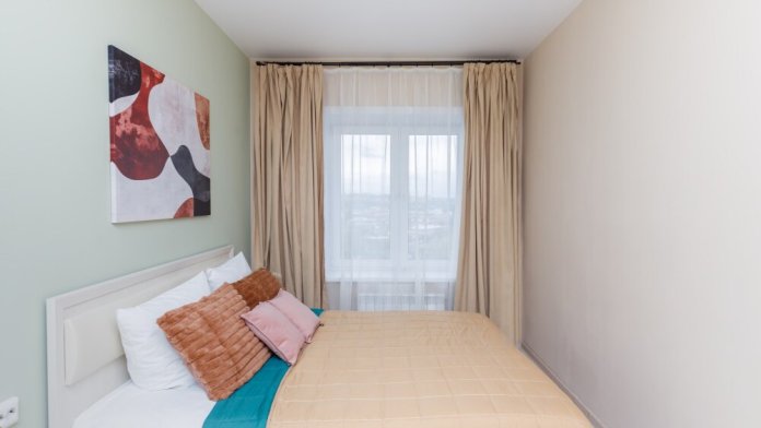 Дополнительно: шкаф-купе с зеркалами, утюг и гладильная доска, фен, постельное белье, полотенца, 2 зубных набора, шампунь и гель для душа.