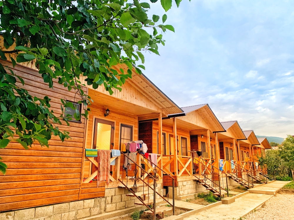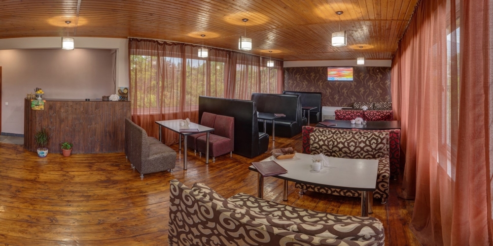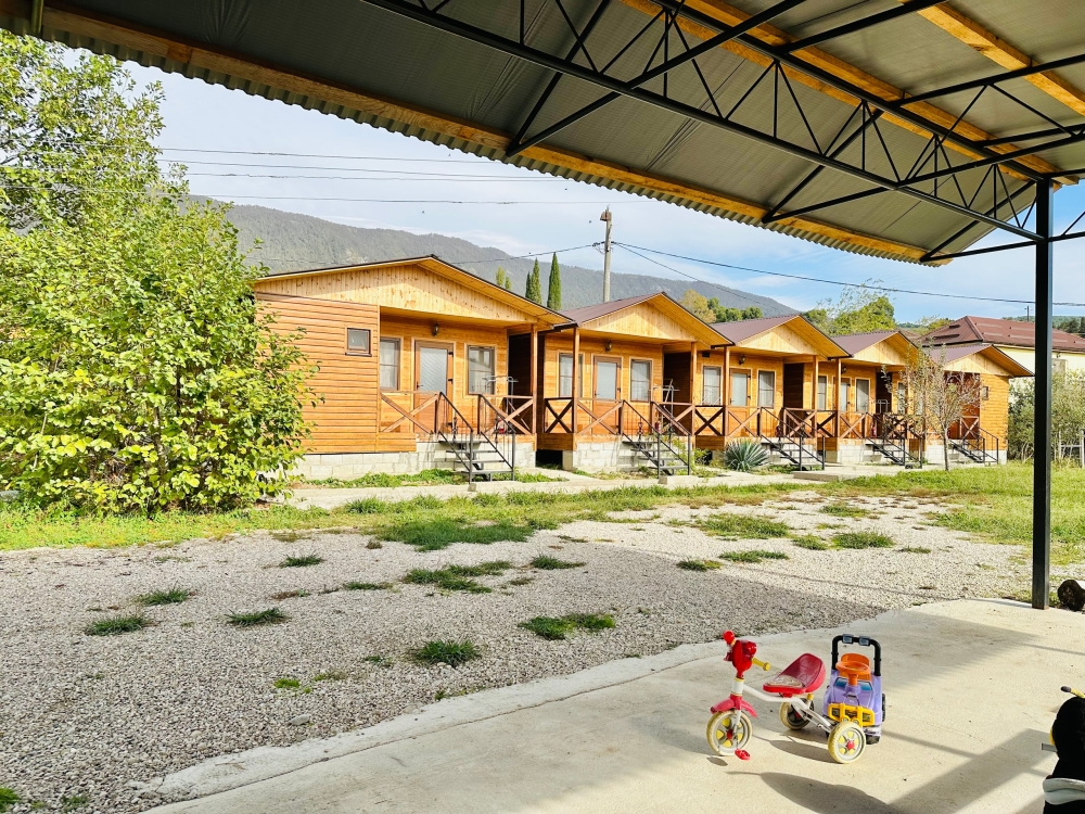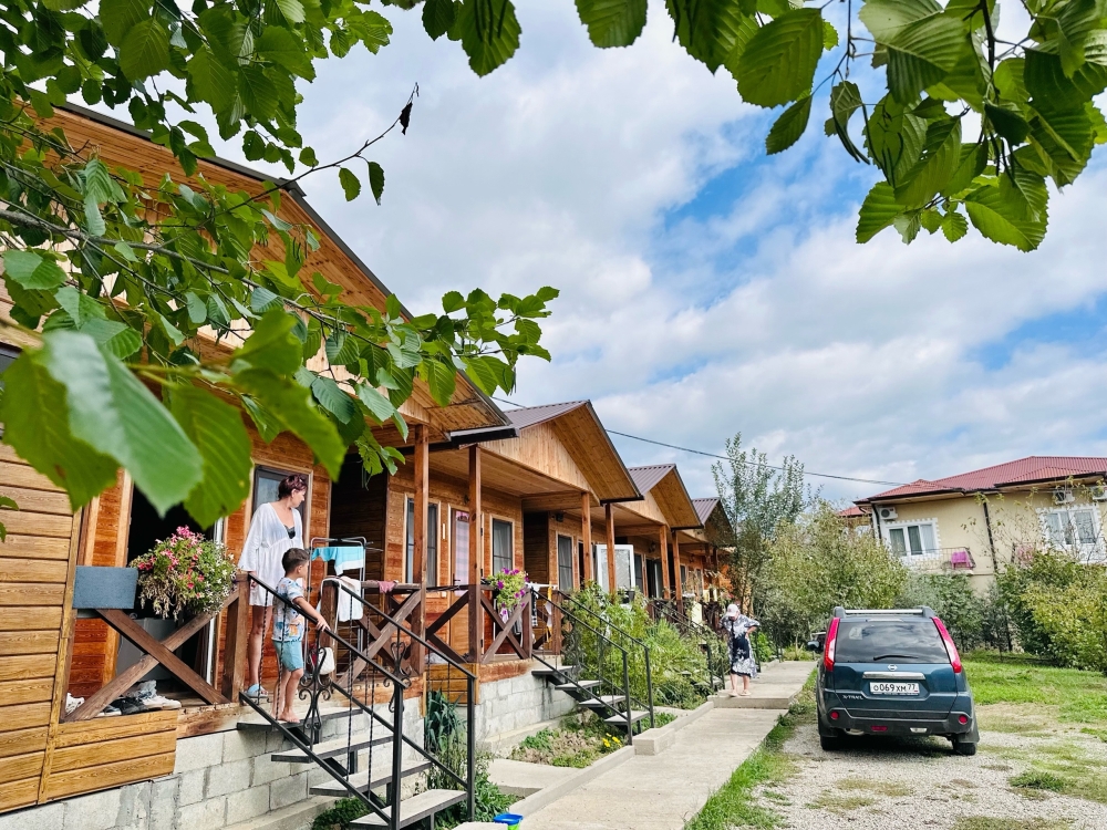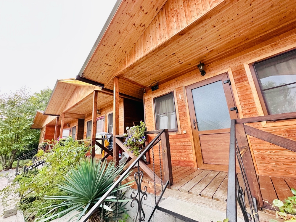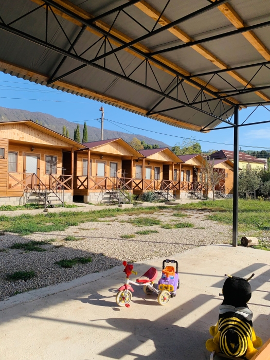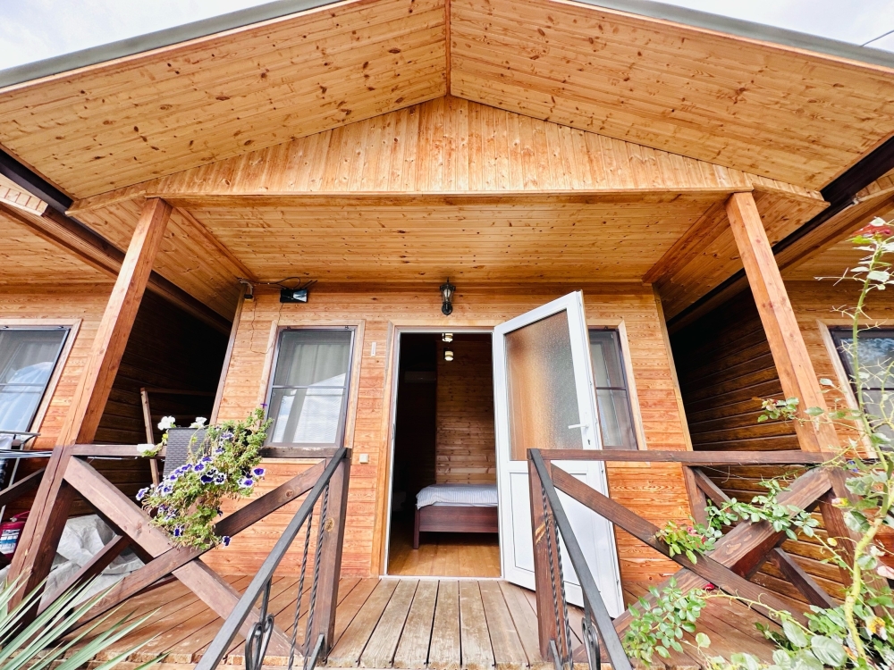На территории расположены семейные домики, корпус гостиницы и кафе, где Вы можете заказать вкусные завтраки, обеды и ужины. Пока кафе закрыто (с 15 октября по 1 июня), можно пользоваться летней кухней.