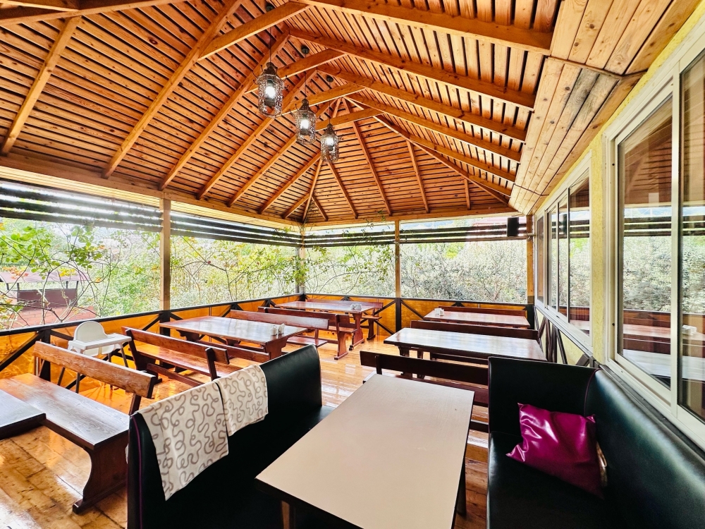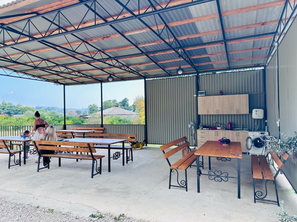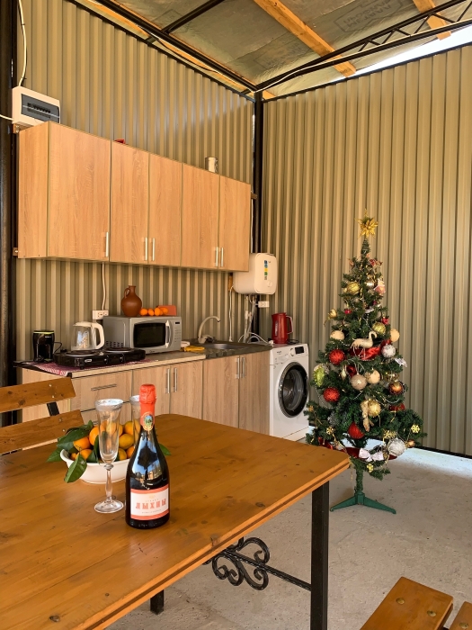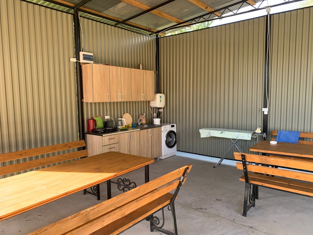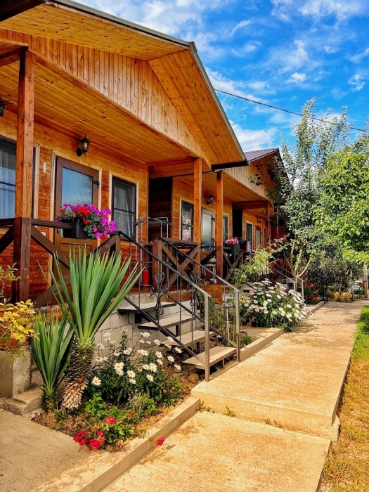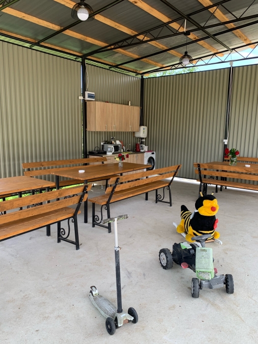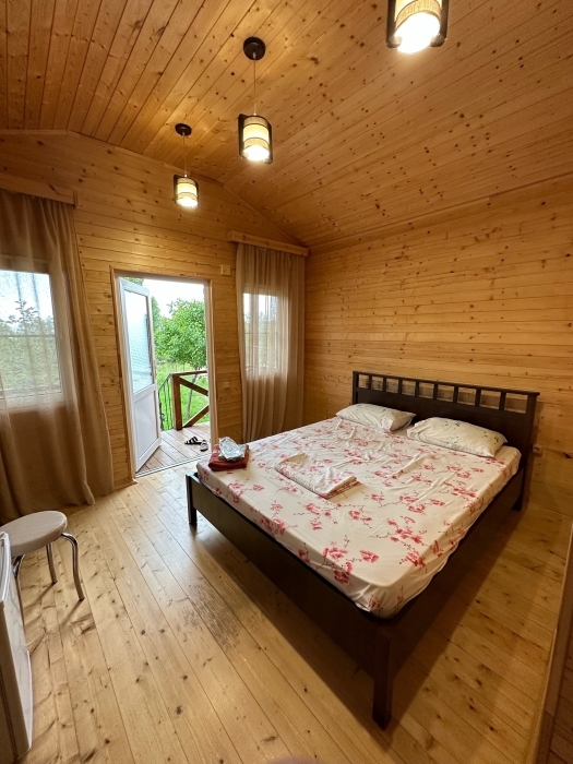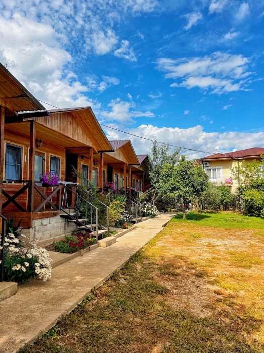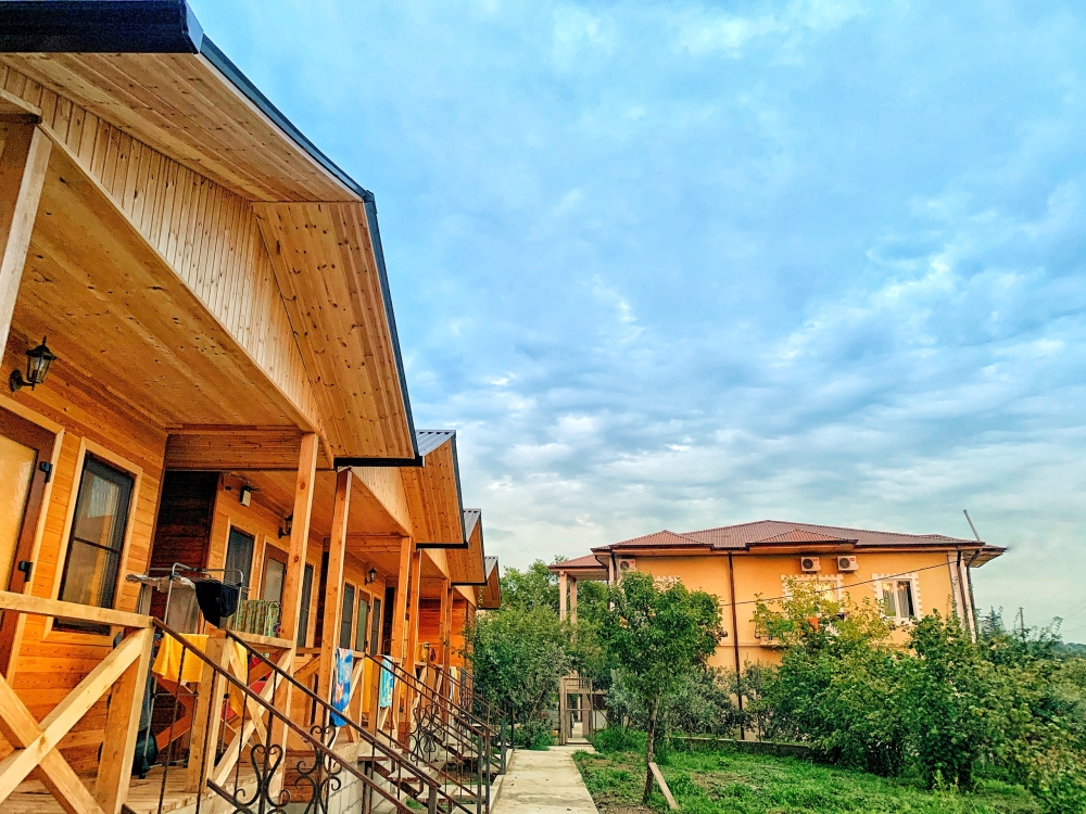 На территории расположены семейные домики, корпус гостиницы и кафе, где Вы можете заказать вкусные завтраки, обеды и ужины. Пока кафе закрыто (с 15 октября по 1 июня), можно пользоваться летней кухней.