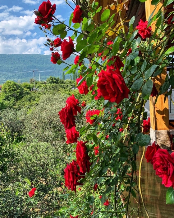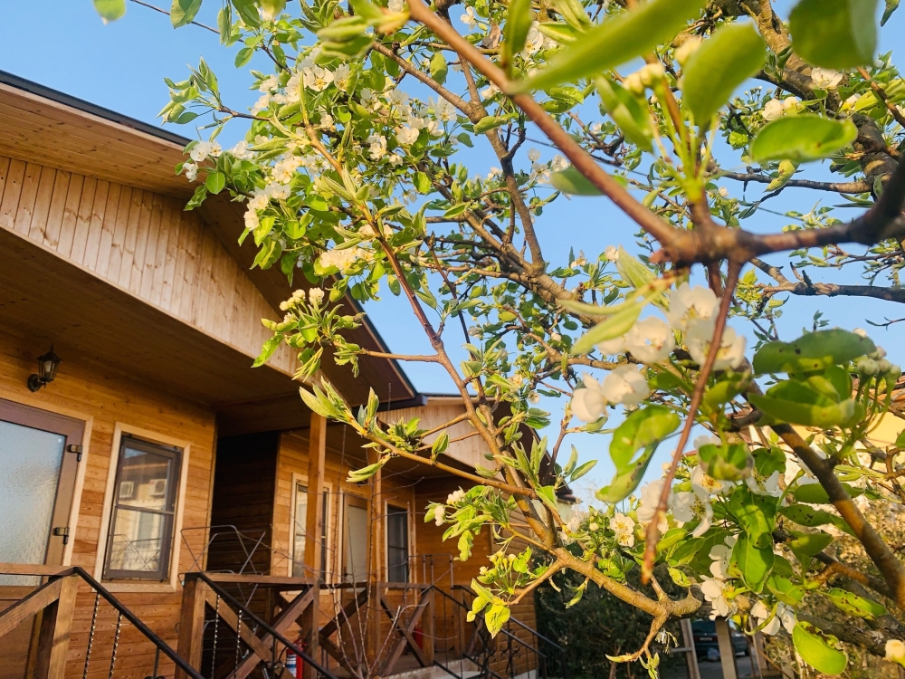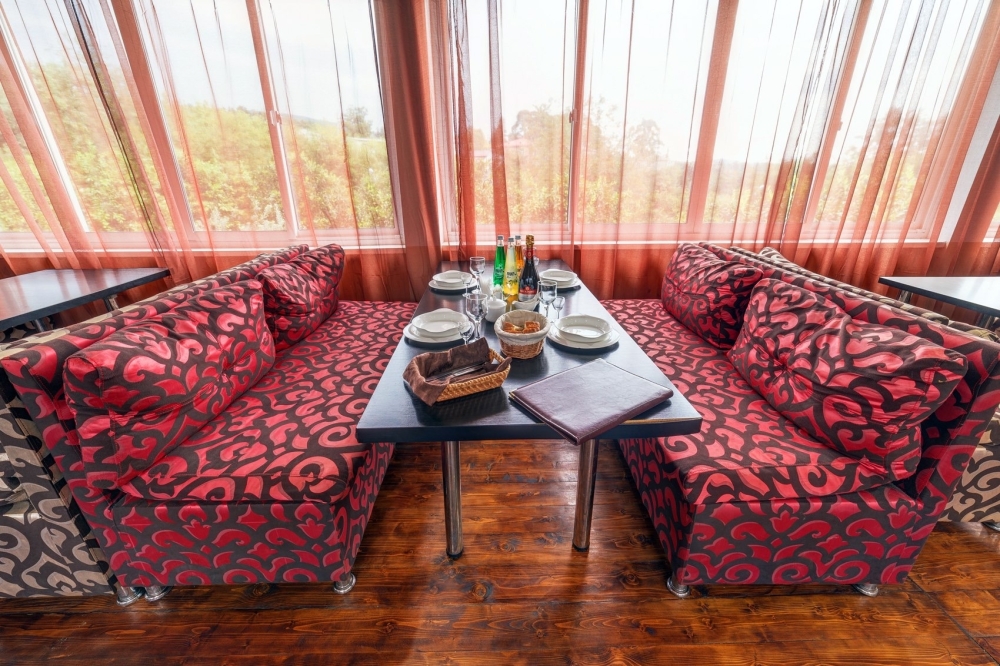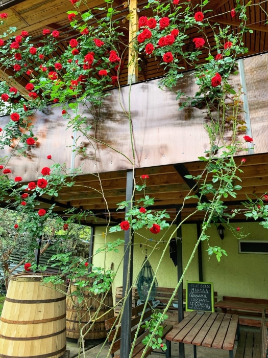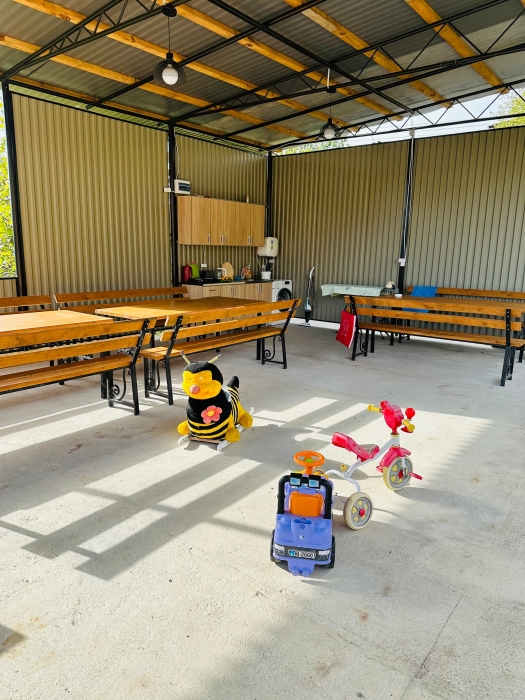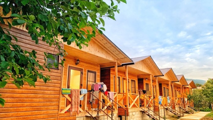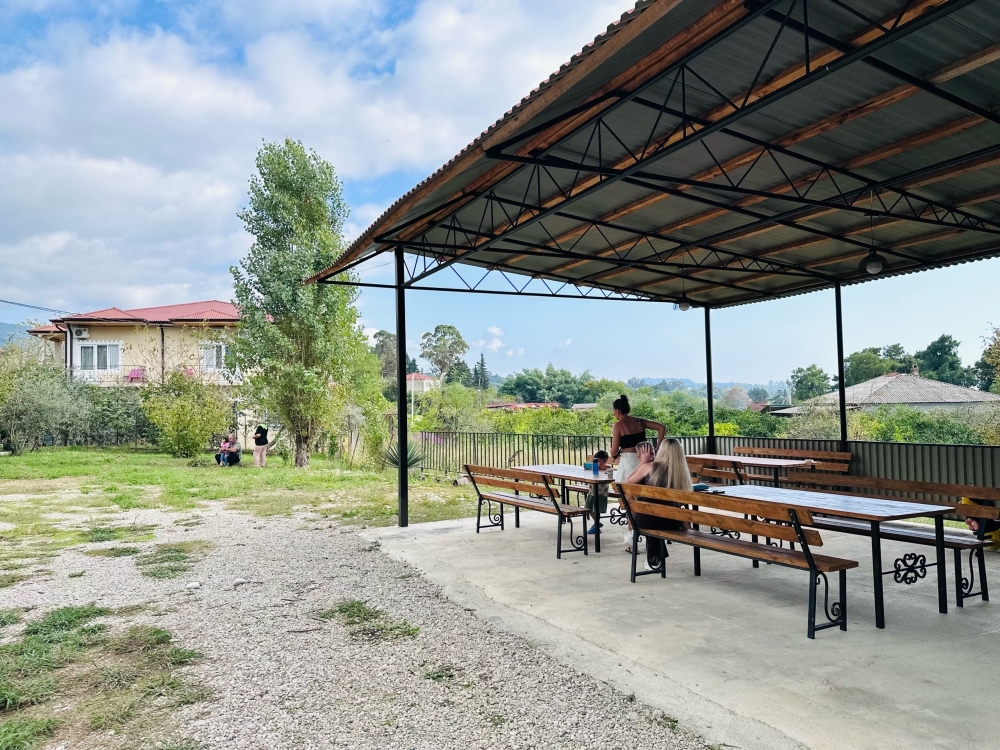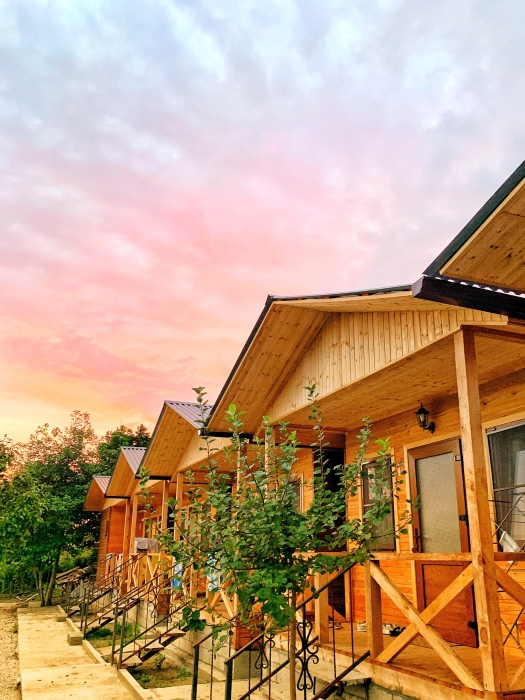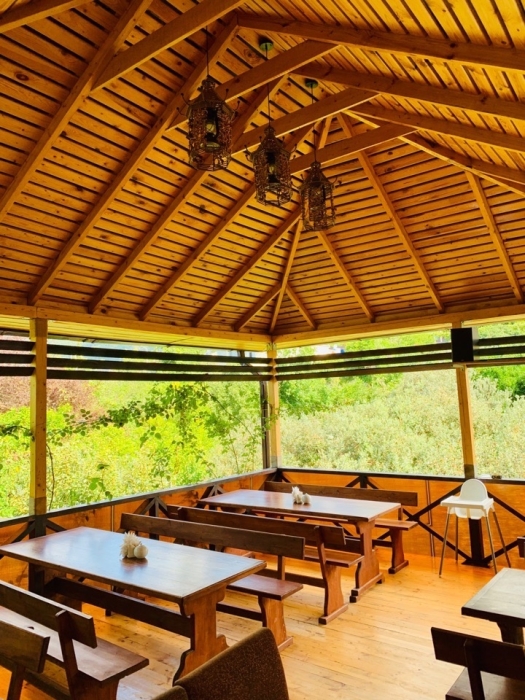 На территории расположены семейные домики, корпус гостиницы и кафе, где Вы можете заказать вкусные завтраки, обеды и ужины. Пока кафе закрыто (с 15 октября по 1 июня), можно пользоваться летней кухней.