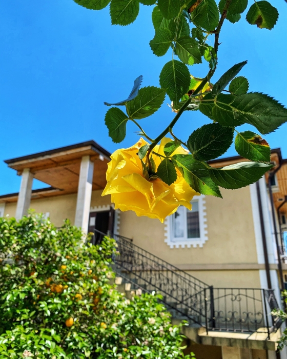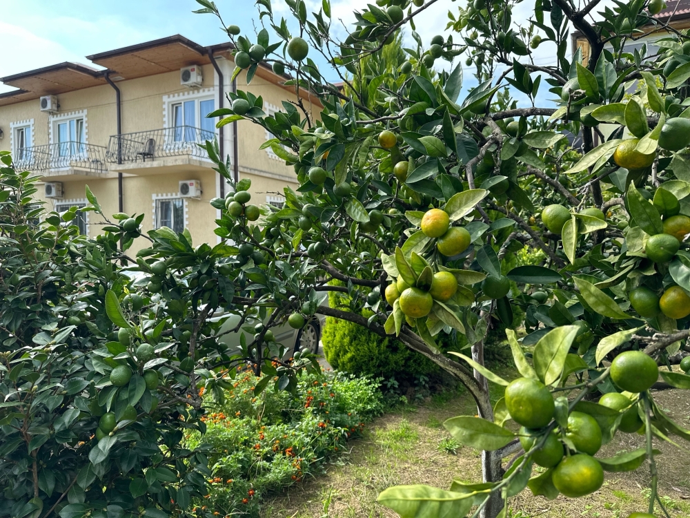 Гостевой дом «Дивный сад» расположен в тихом и живописном предместье курорта Новый Афон в 200 метрах от Черного моря. Гостевой дом окружен фруктовыми деревьями: мандариновыми и апельсиновыми деревьями, рядом с отелем растет лимон и фейхоа.