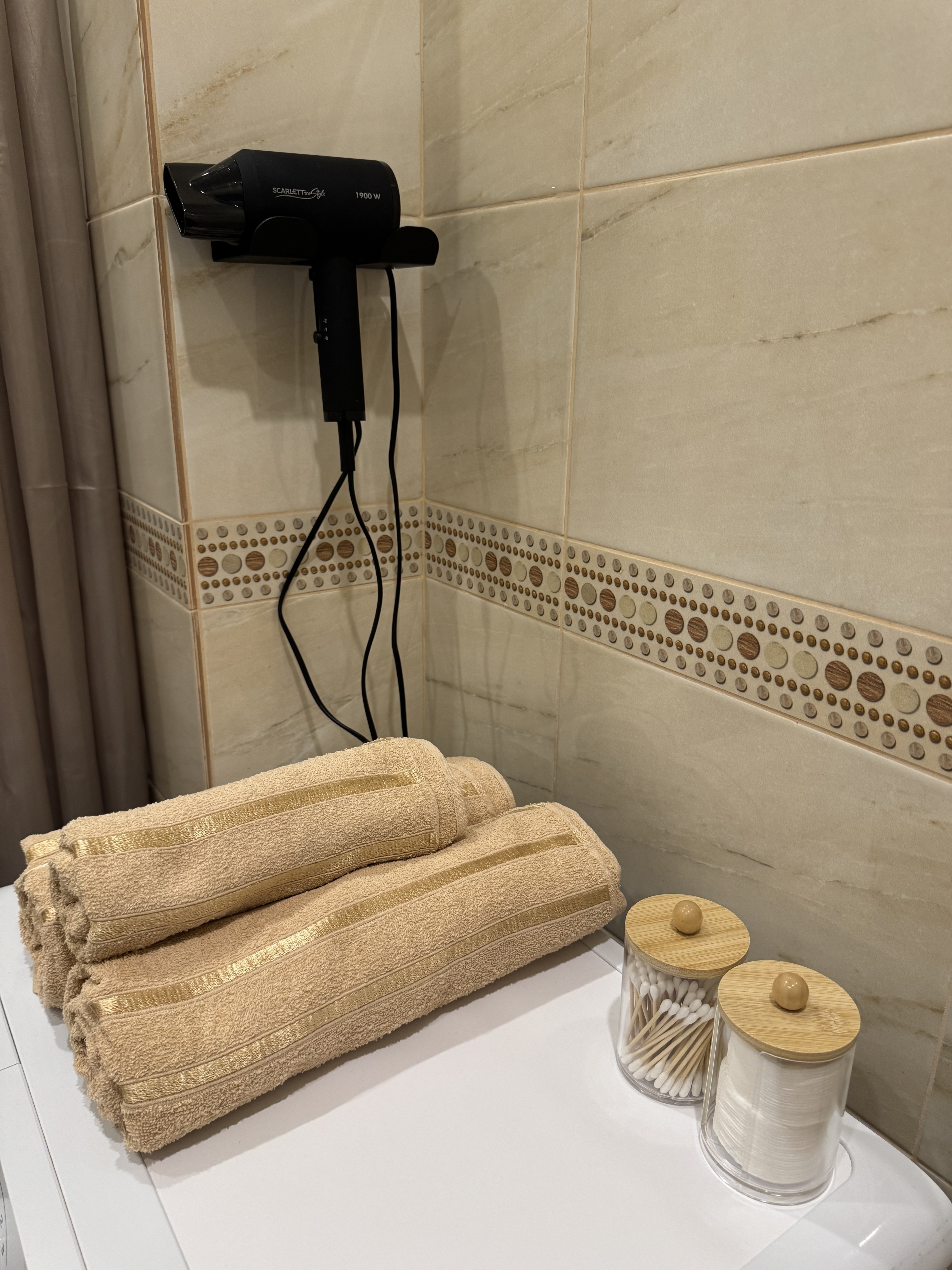 Наша современная стильная студия расположена прямо напротив центрального стадиона - вид из окна подарит ощущение, что Вы сидите на трибуне во время матча. В доме продуктовый «Перекресток», Fresh Fitness спортивный клуб, множество баров, магазин «Магнум», кальянная, аптека, барбершоп, студия праздника, кулинария, зоомагазин, пункт выдачи Wildberries.